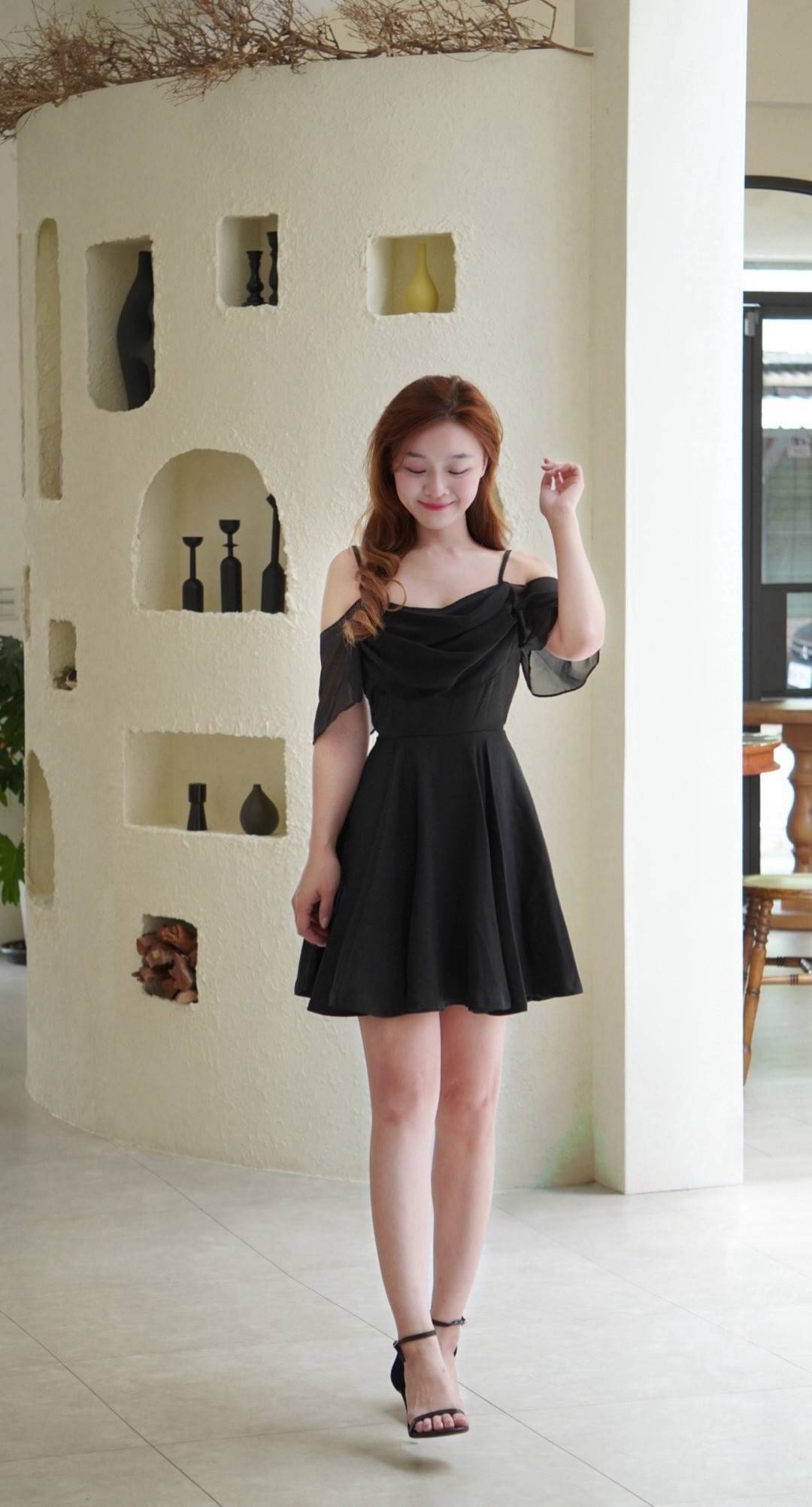 以細緻雪紡與滑順布料交疊出微露鎖骨的柔美線條。