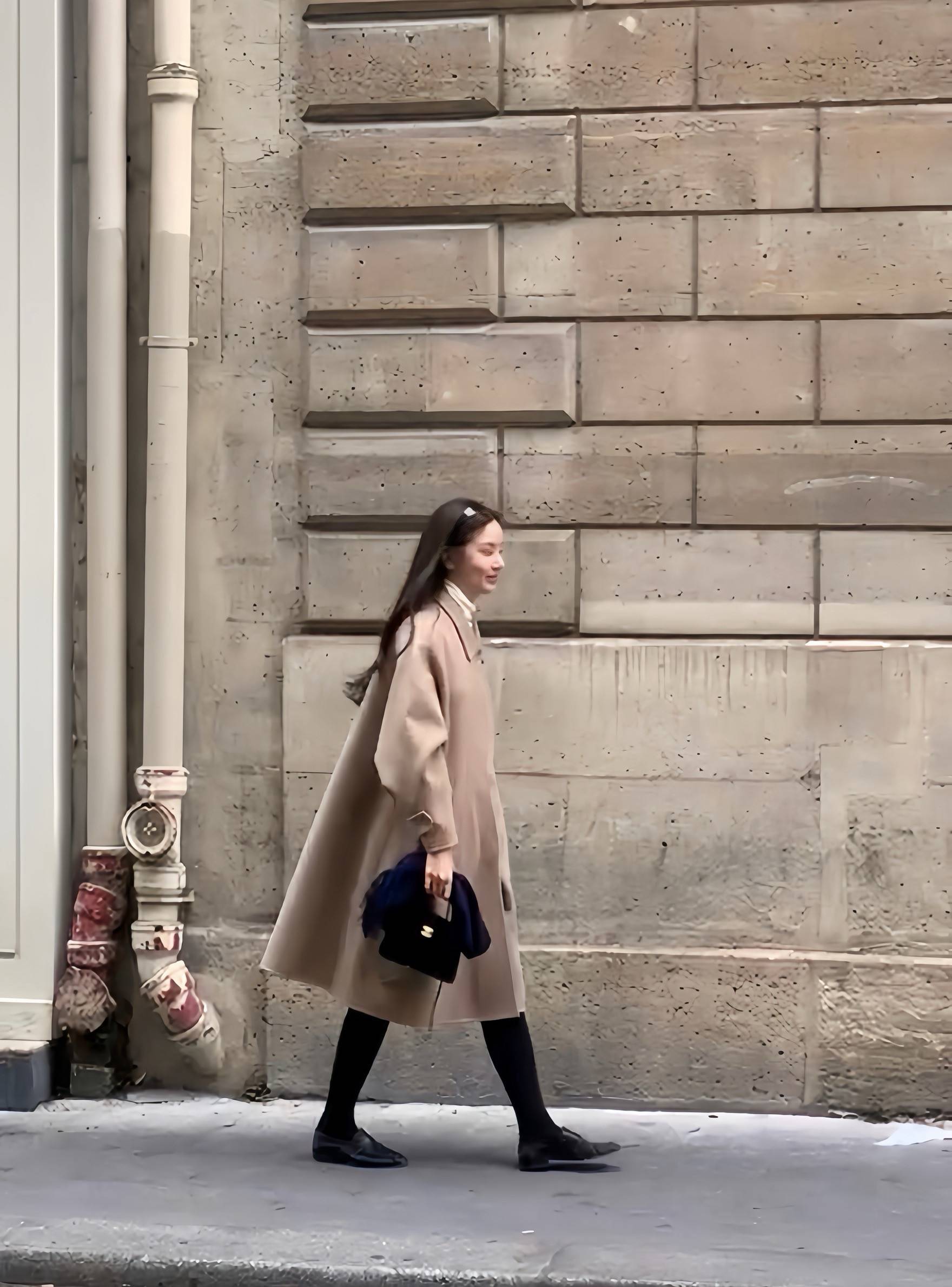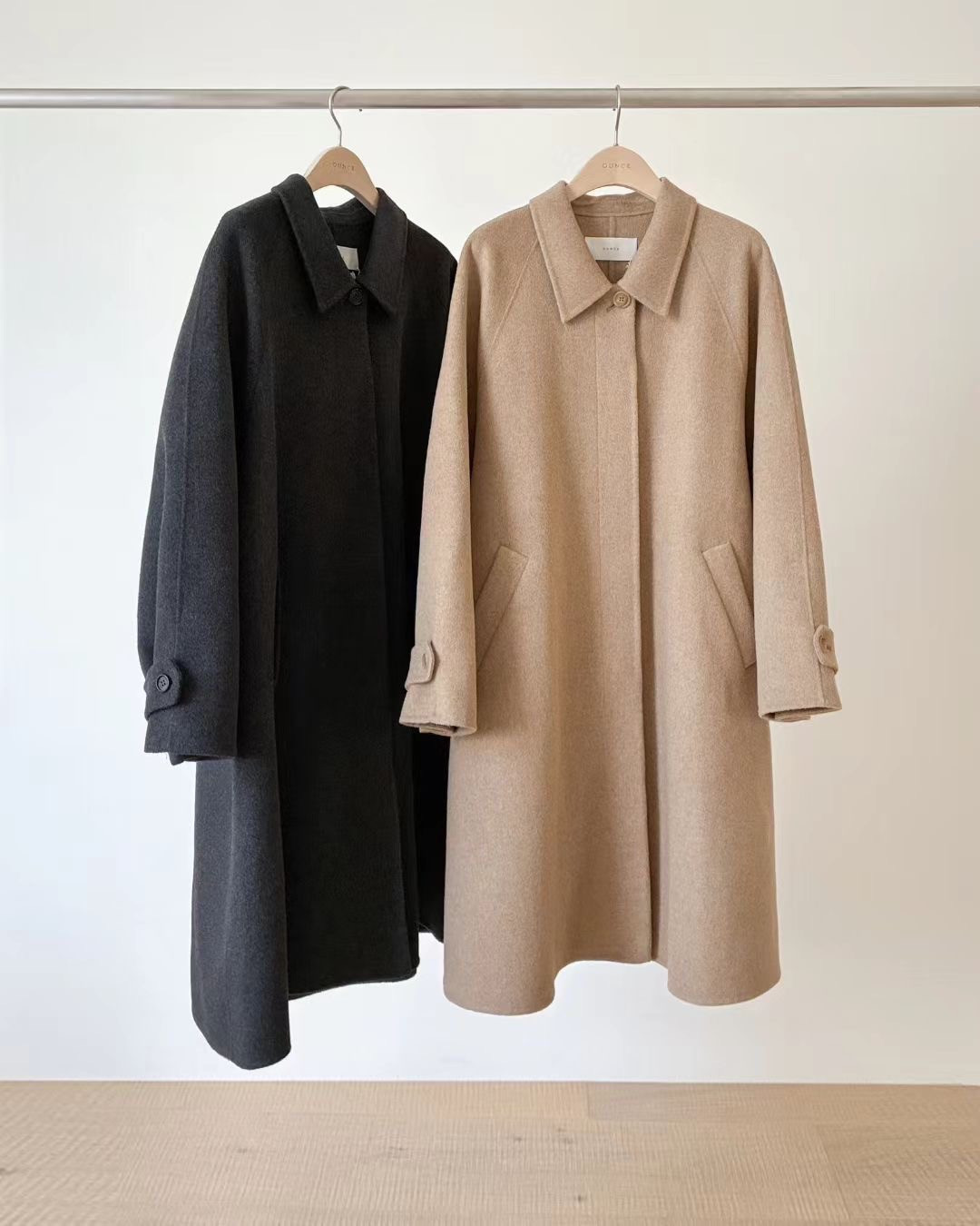 落肩與微A版剪裁,行走間自然展開,輕盈卻具份量感。