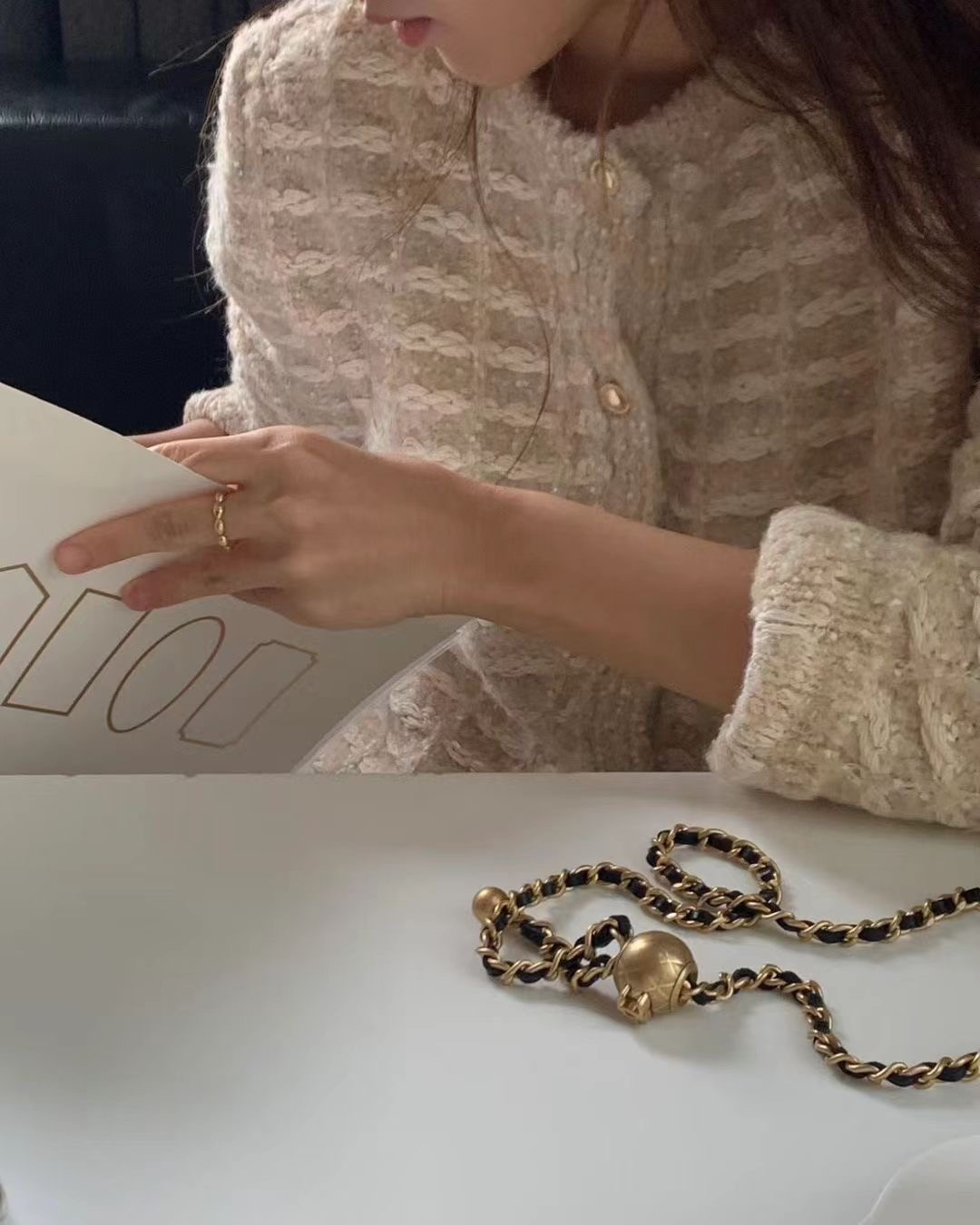 小香風設計+珍珠感金扣