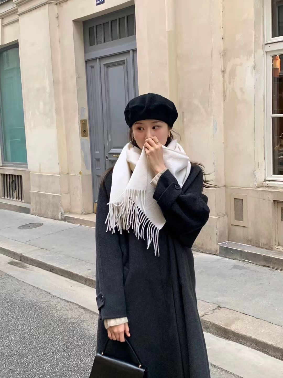 配黑色大衣或灰針織,會有一種「不經意的法式氣質」。