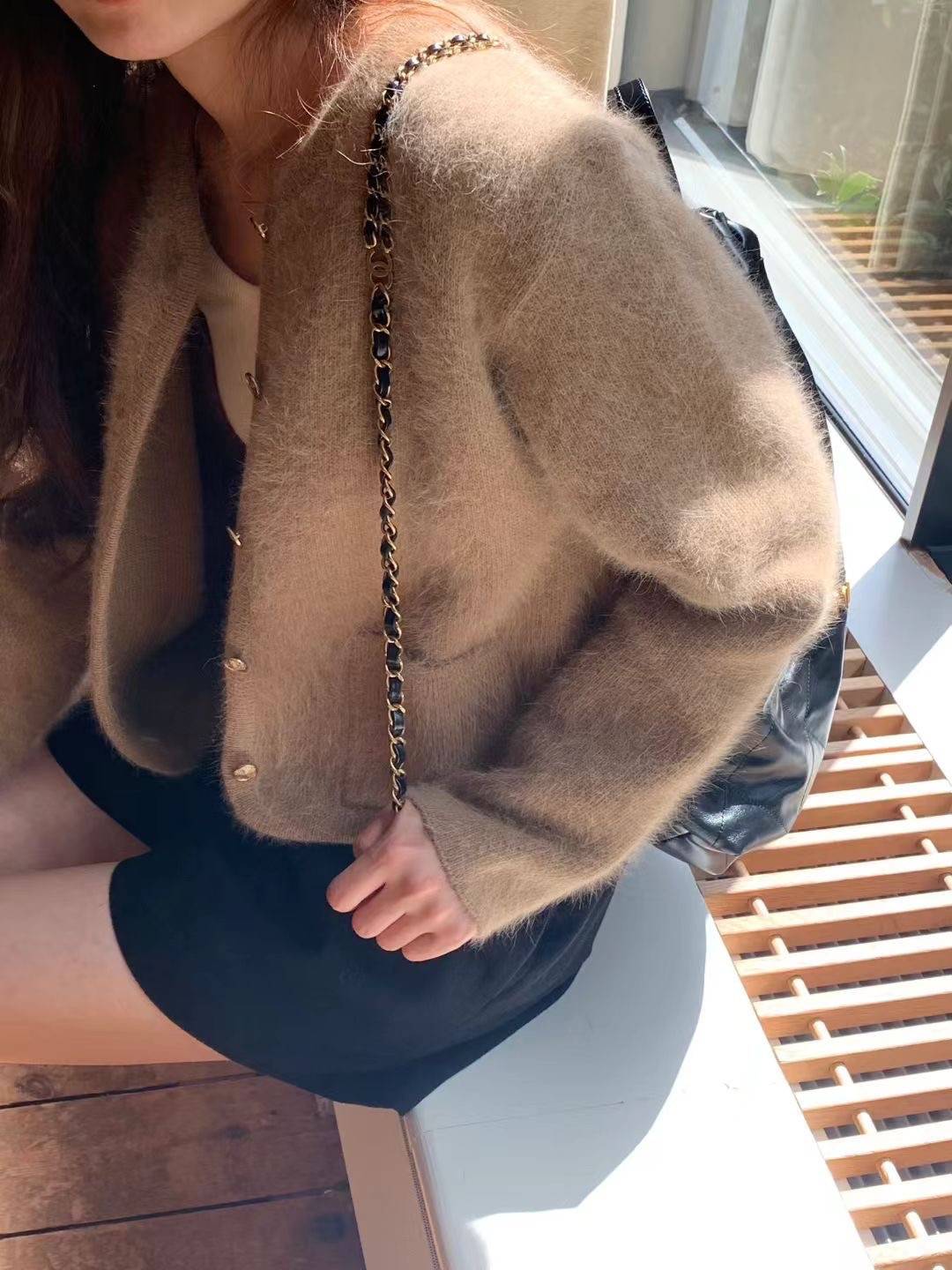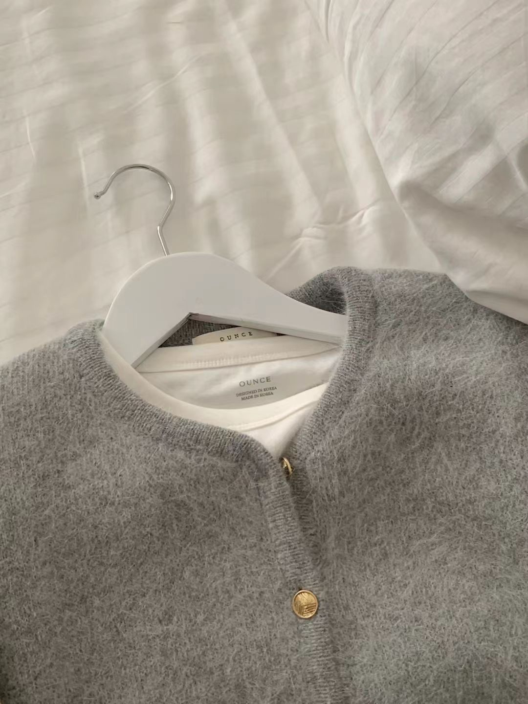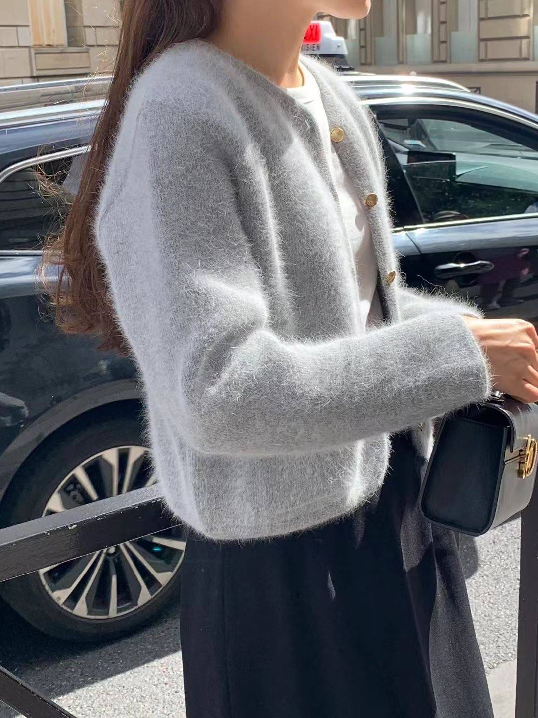 毛感細緻蓬鬆,金釦在光下閃出低調光澤,