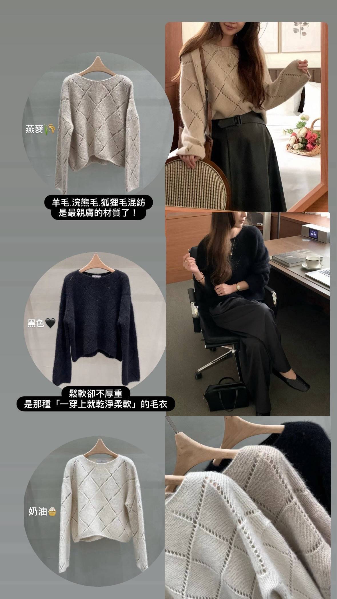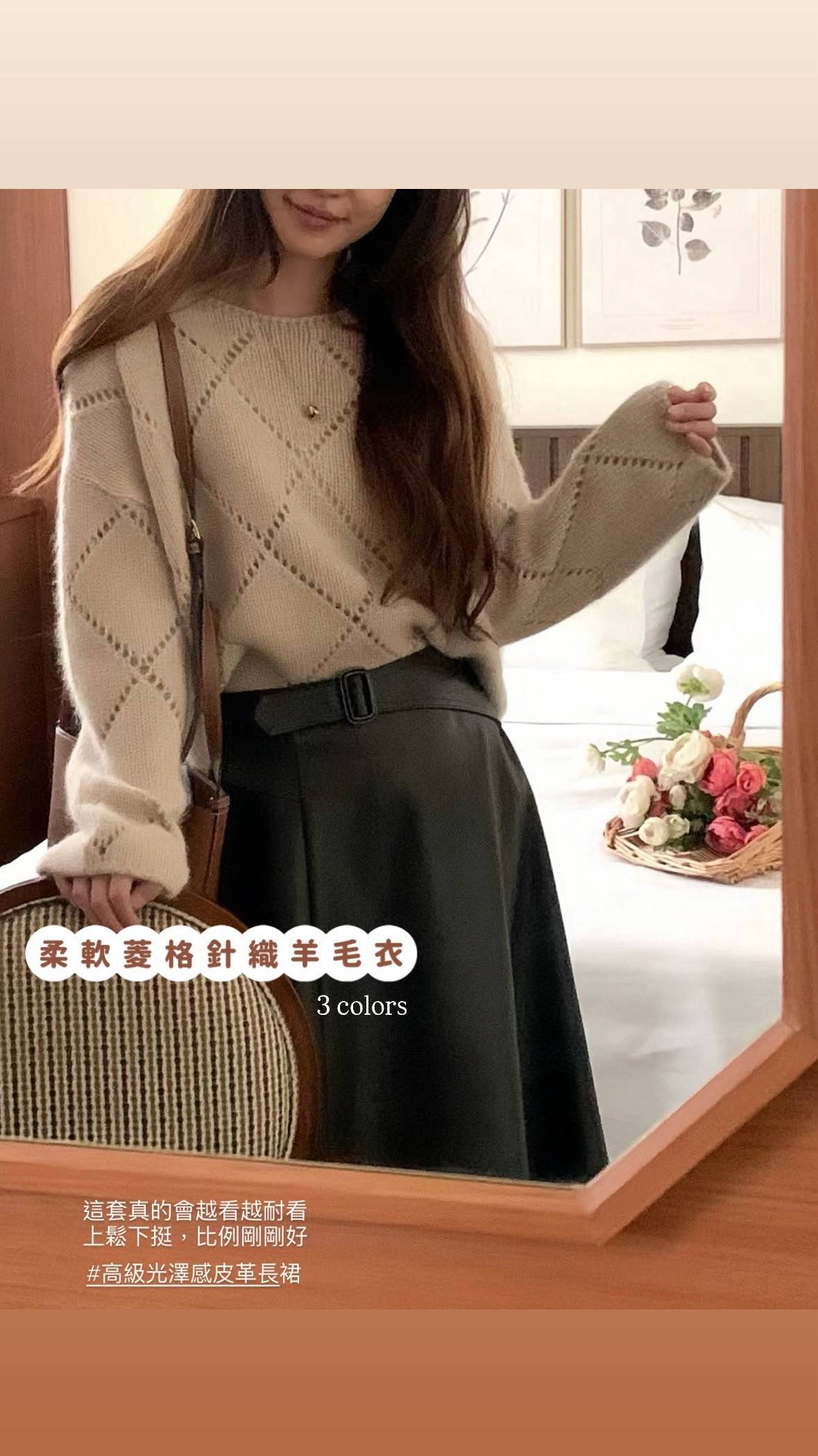 柔軟菱格針織羊毛衣( 3 colors)
