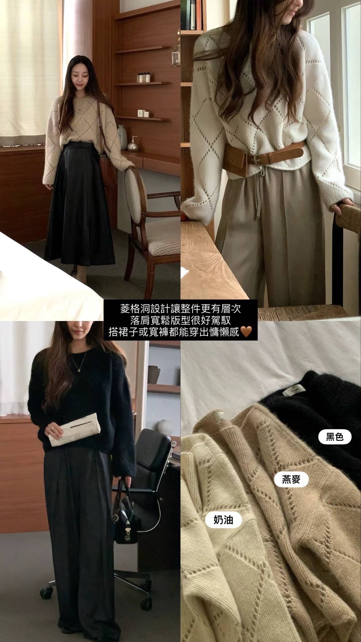 菱格洞設計讓整件更有層次落肩寬鬆版型很好駕馭
