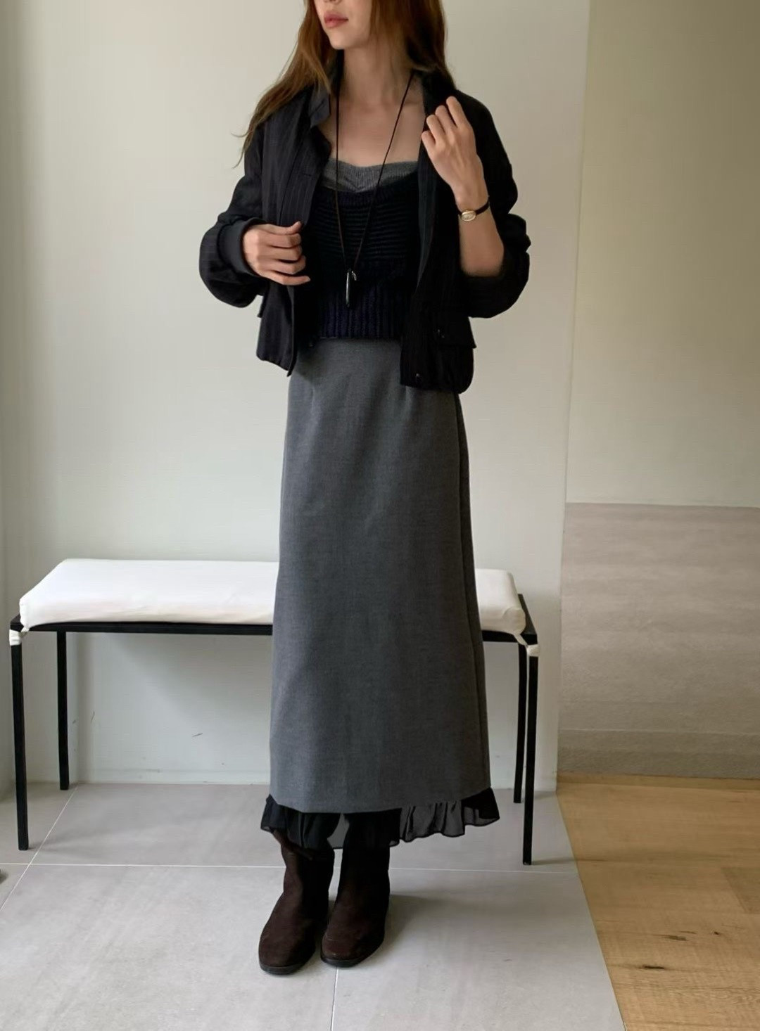 冷調灰中帶一點黑韻特別顯瘦又有都會感