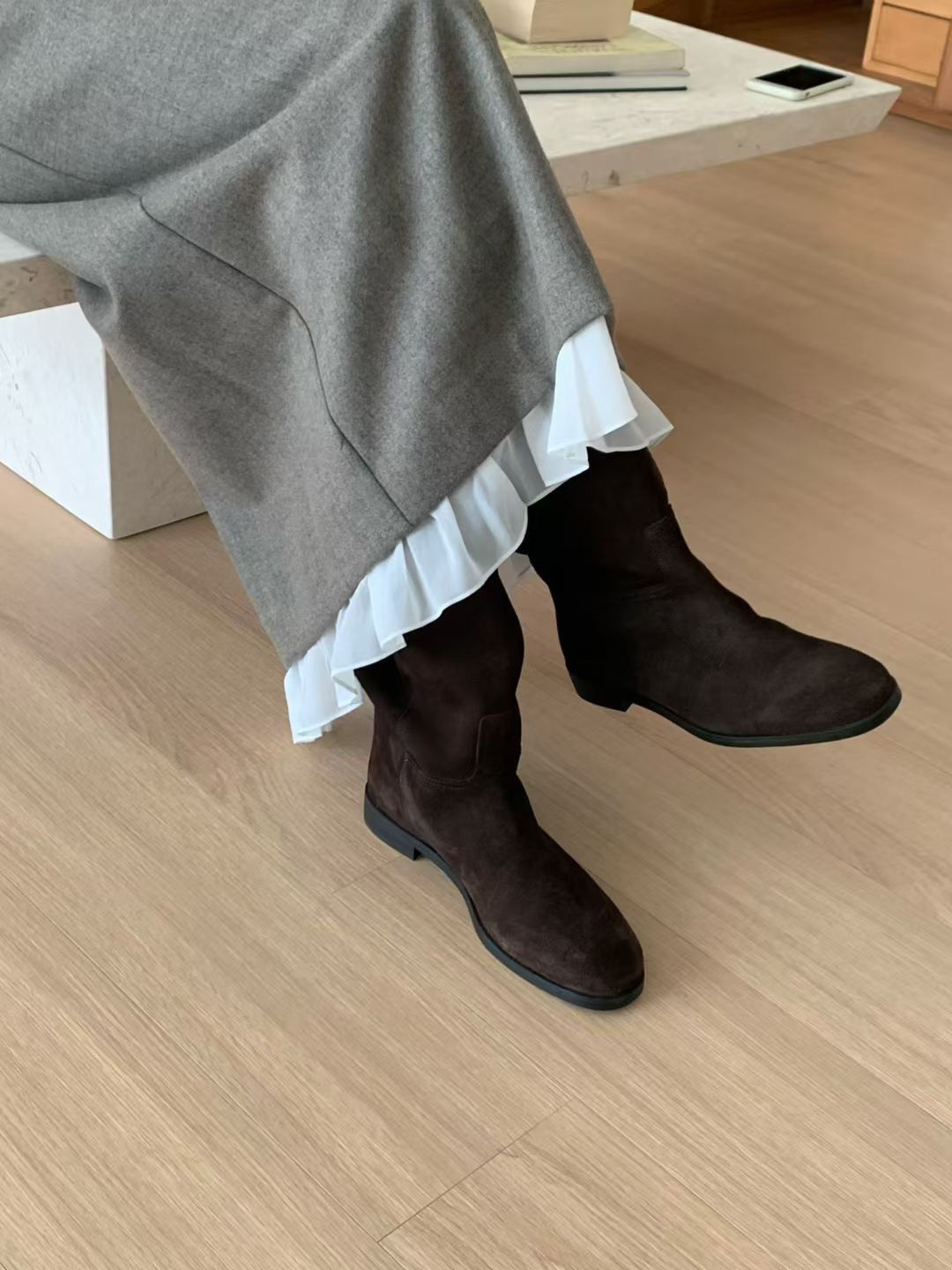 可撘短靴或樂福鞋