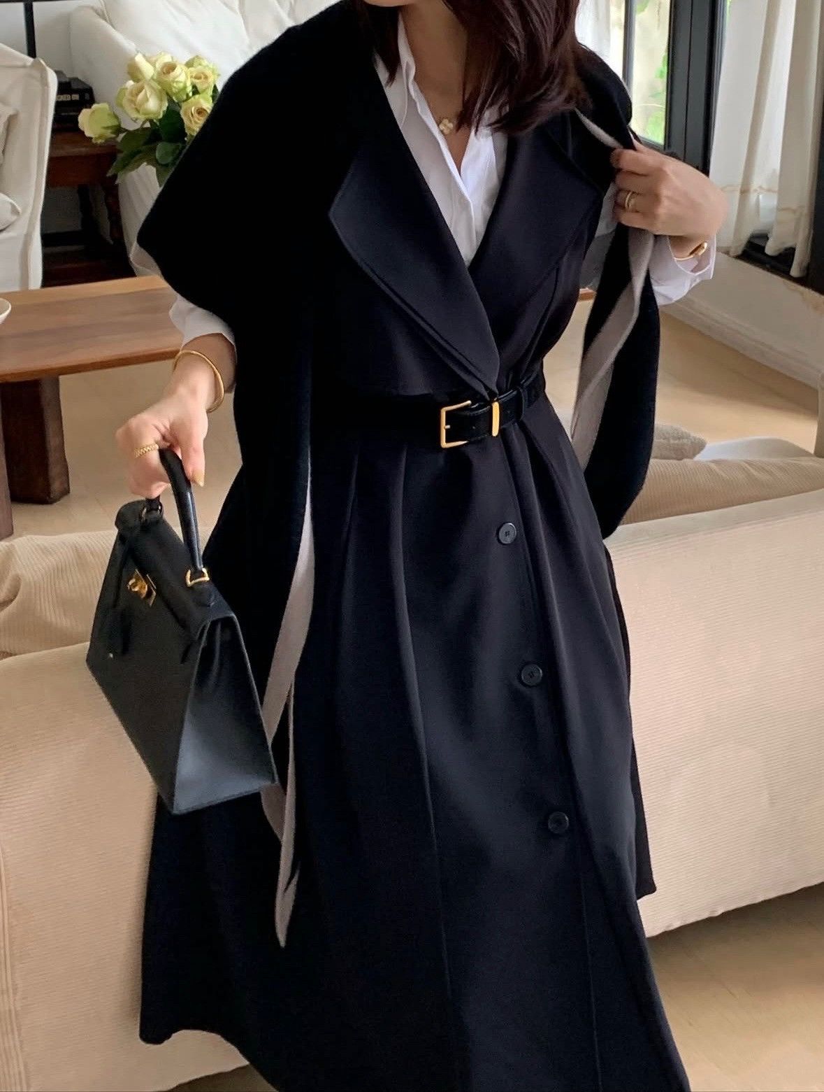 版型延伸自經典風衣線條,俐落、顯瘦又不厚重