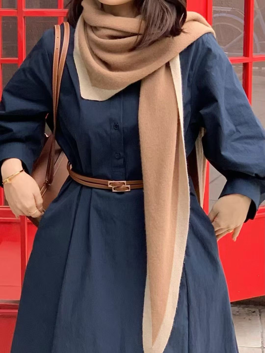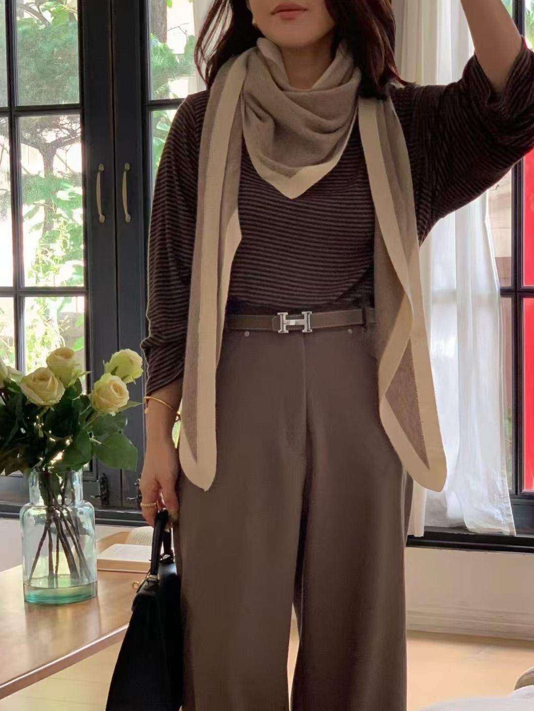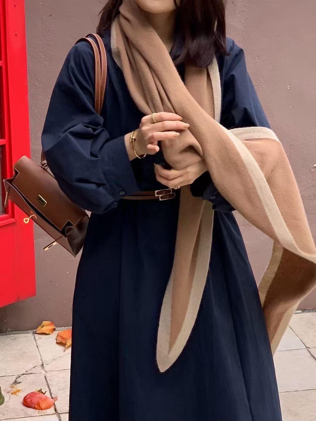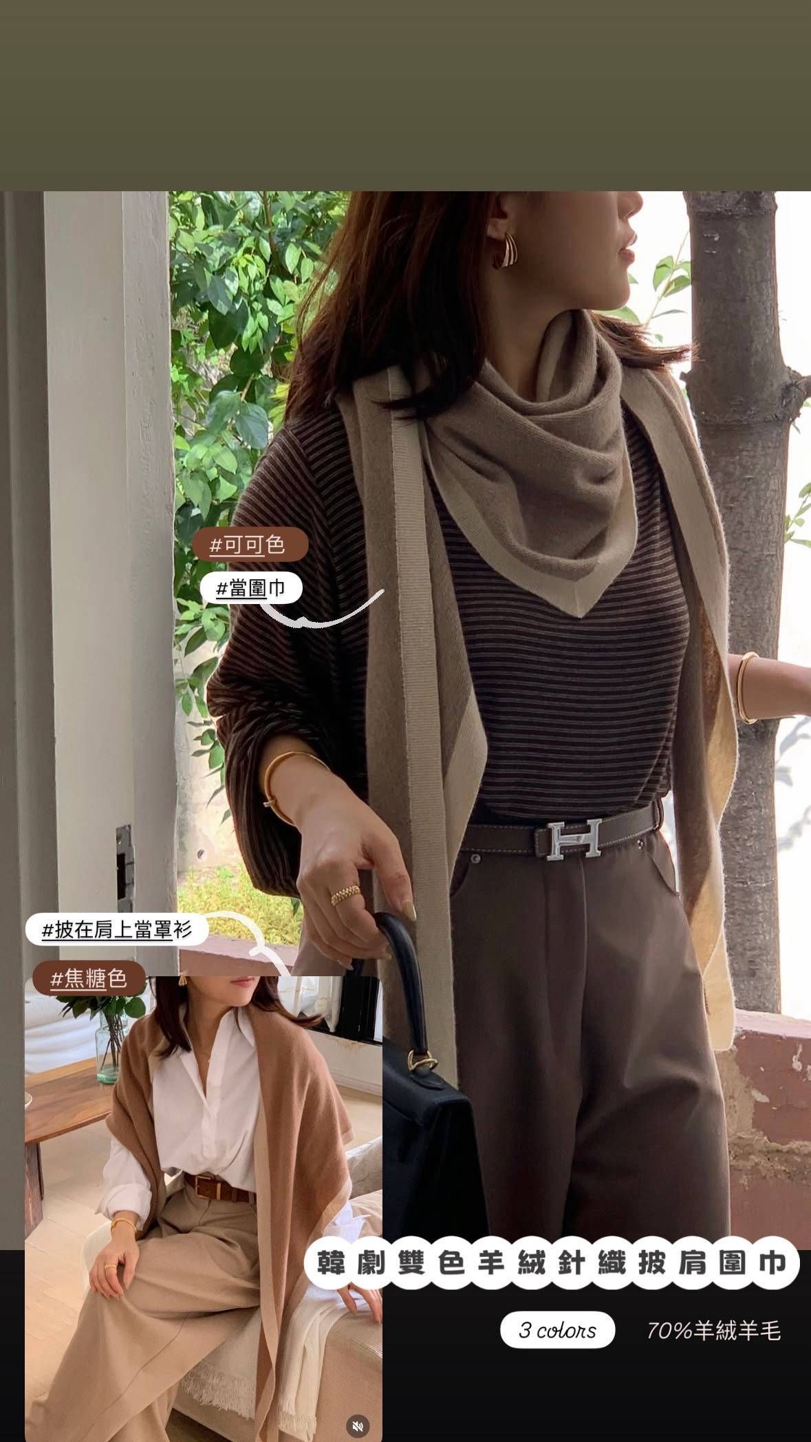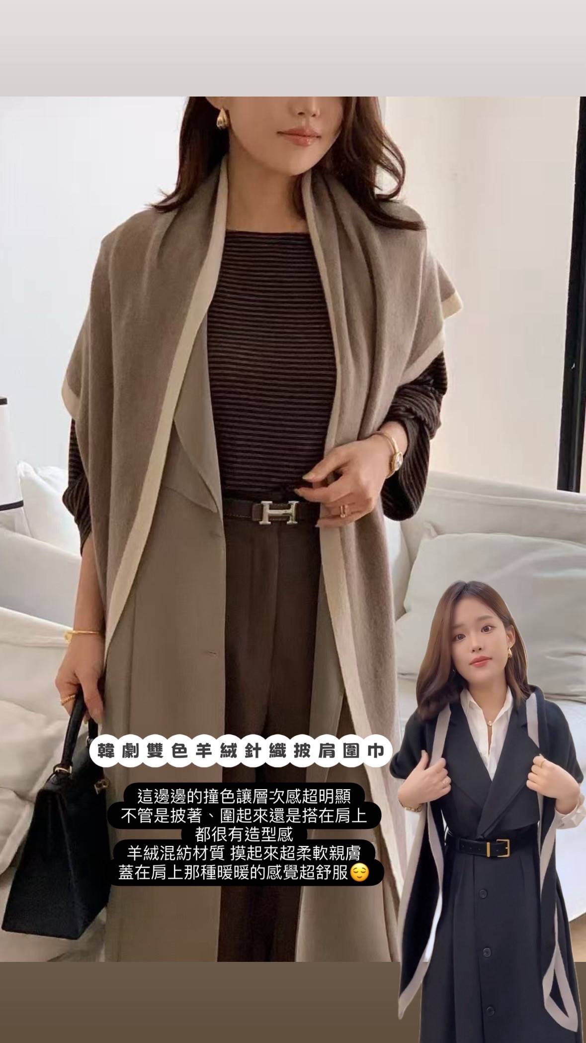 韓劇雙色羊絨針織披肩圍巾(3 colors)
