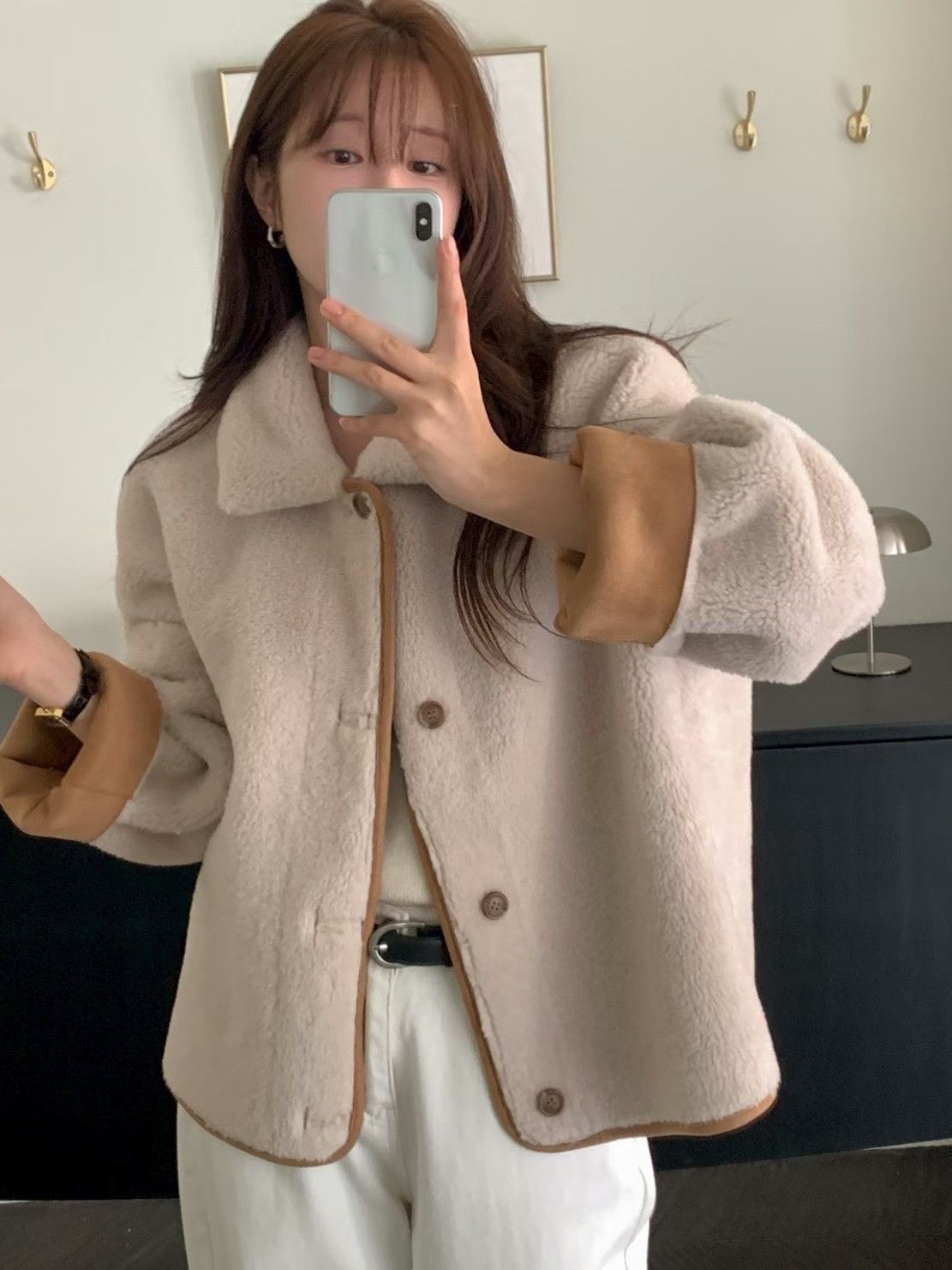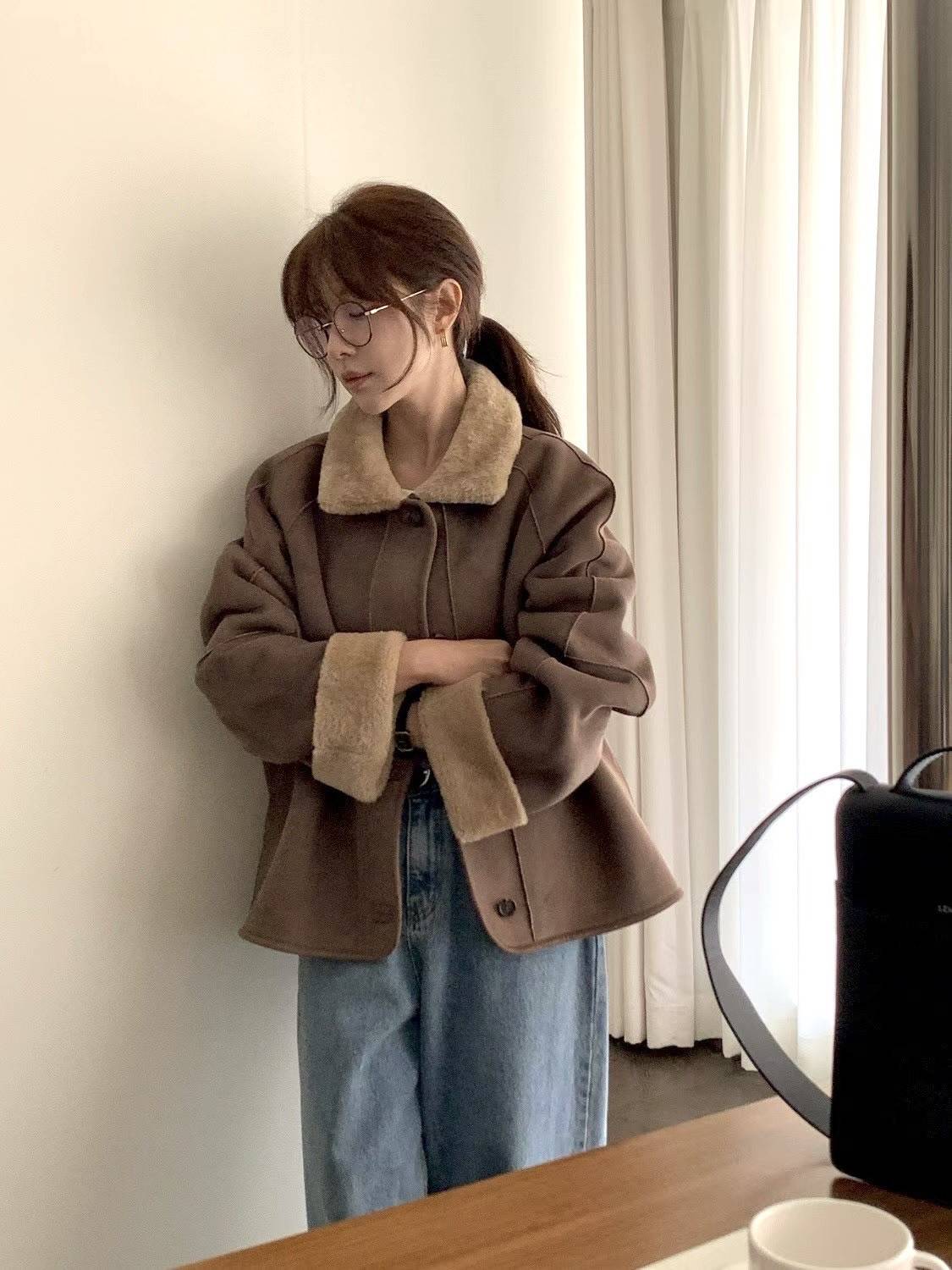 反面穿成羊羔毛面時,整體氛圍更溫柔、可愛。