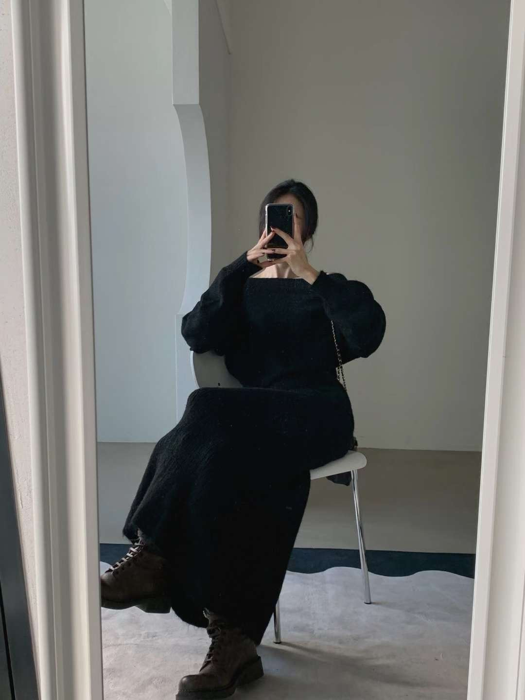 自然垂墜的針織紋理讓身形線條被修飾得恰到好處
