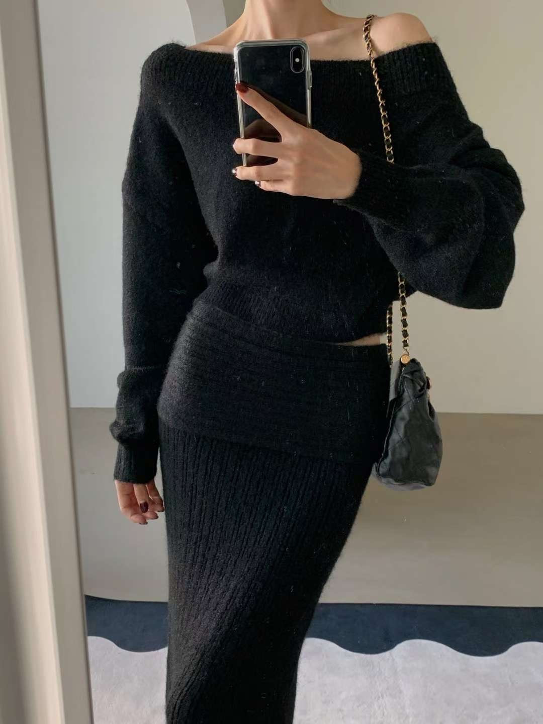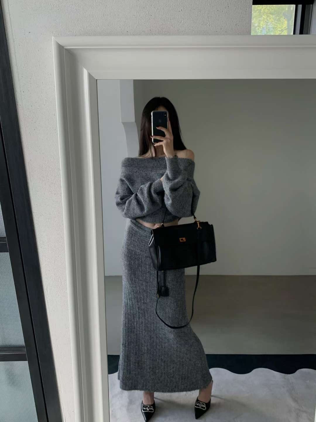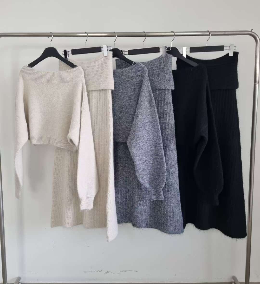 慵懶肩線羊毛針織套裝(3 colors)