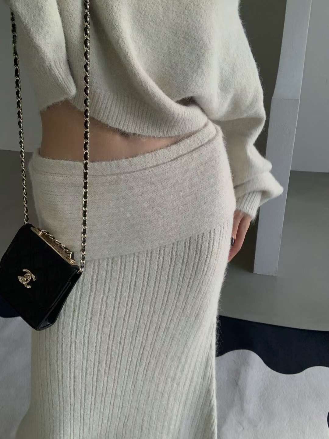寬鬆微短上衣+高腰針織長裙的組合