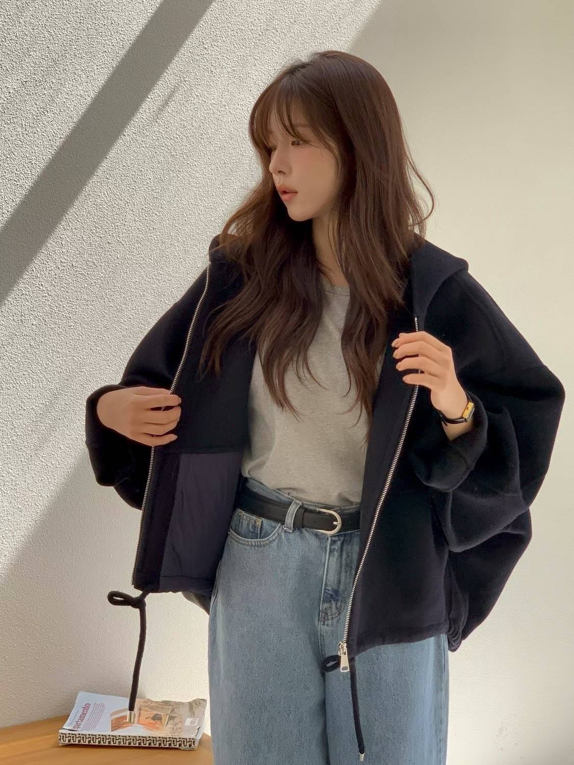 比黑色更柔和,搭牛仔褲或灰調內搭都很韓