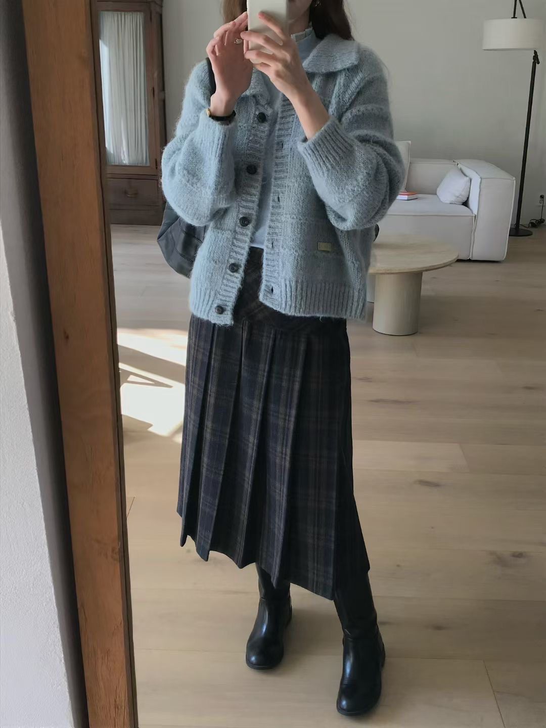 低調的藍×咖啡格紋,近看才覺得好看那種