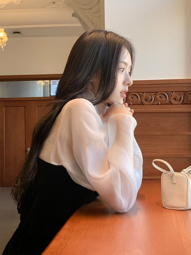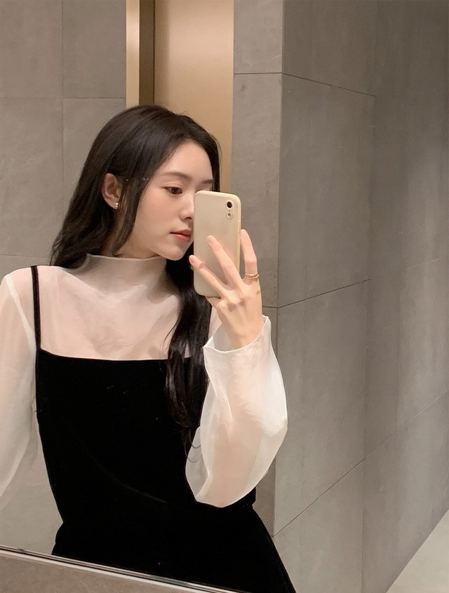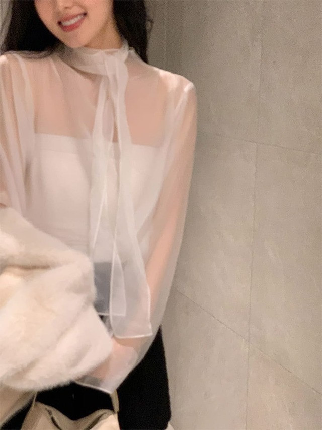(限時三天)氣質柔霧紗透膚綁帶襯衫
