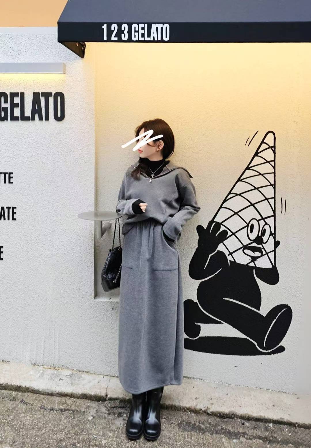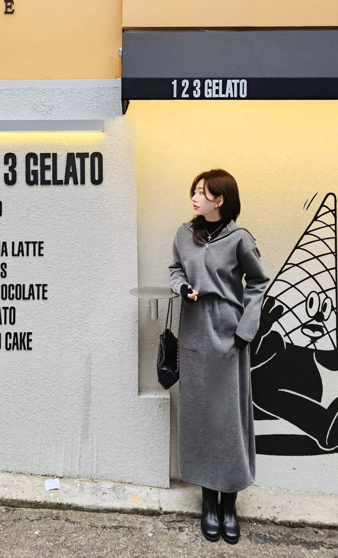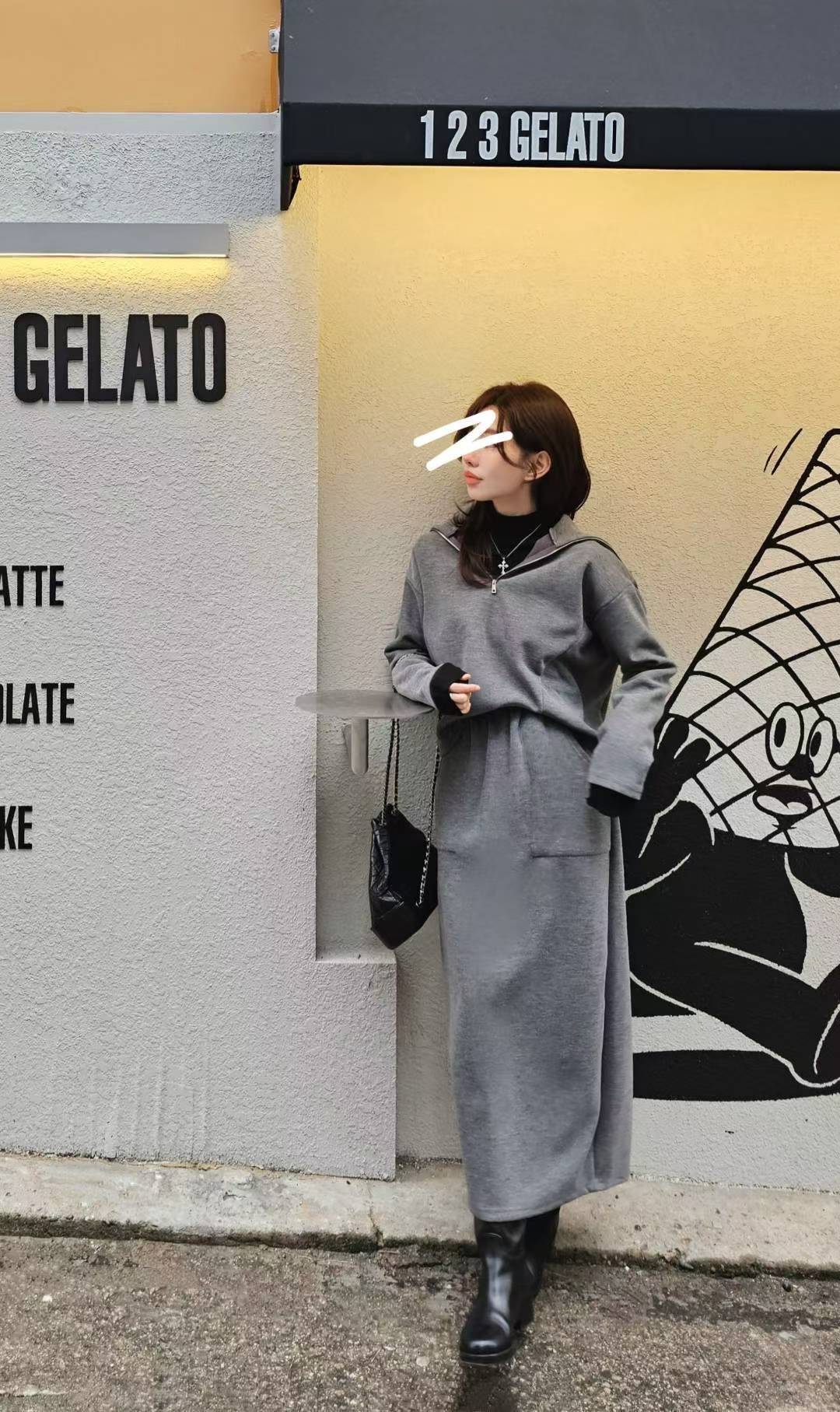 這套灰色真的很神,素顏穿也不會沒精神,反而有一種乾淨的氣質
