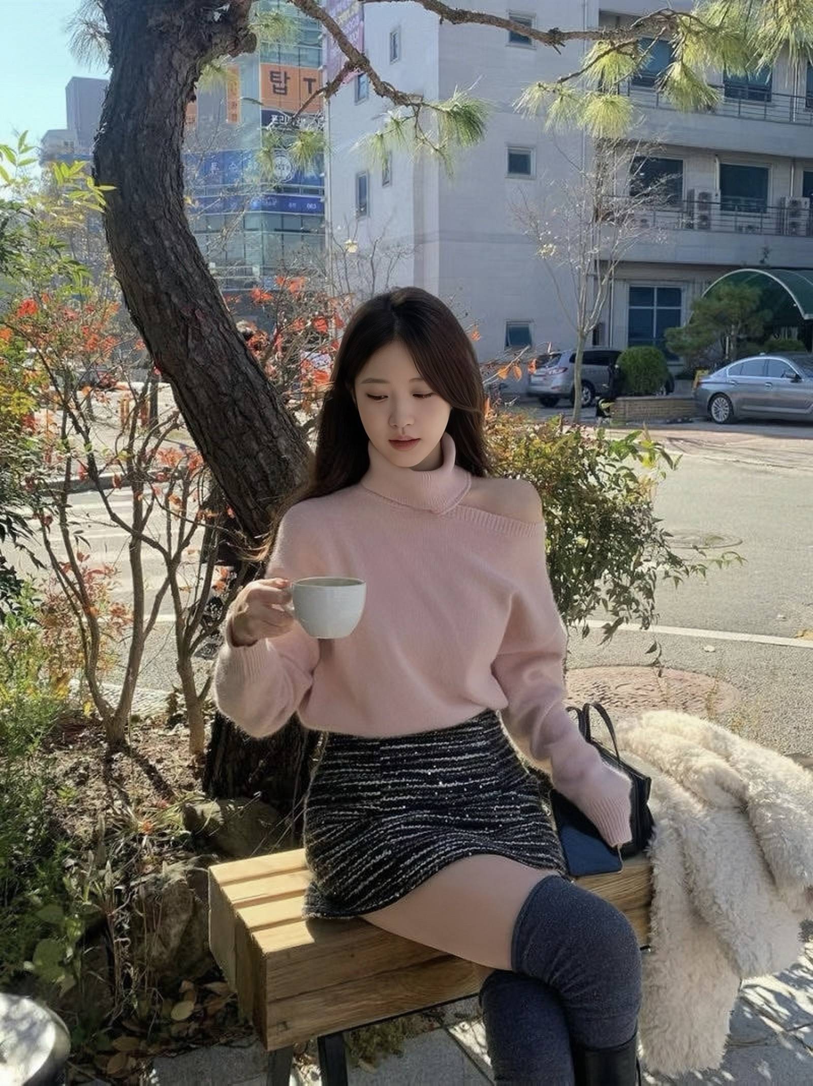 搭個短裙或靴子就很有韓國歐膩感