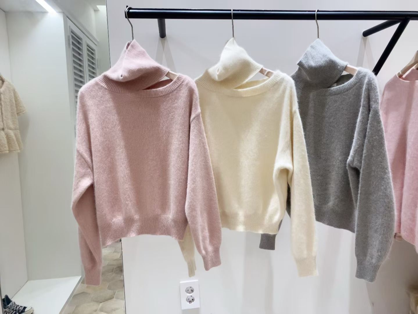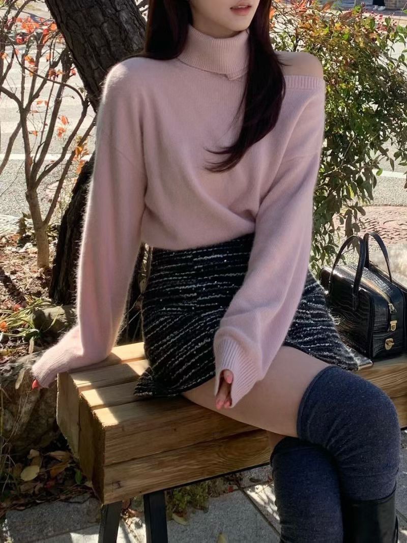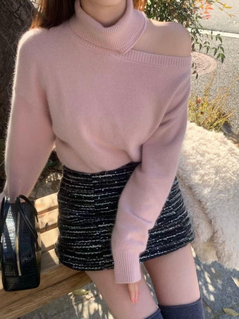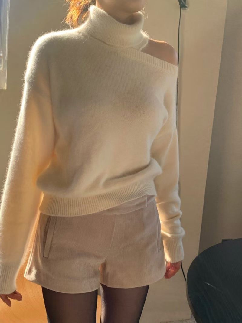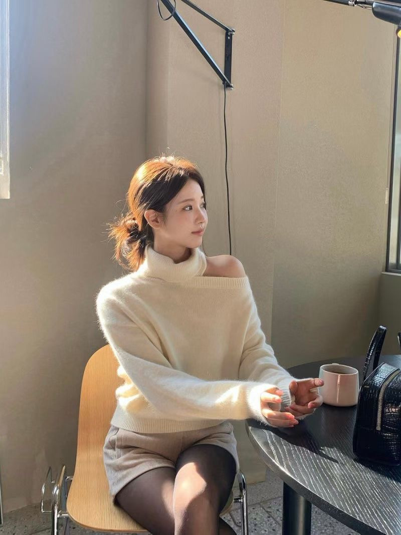 高領+斜肩的組合很神