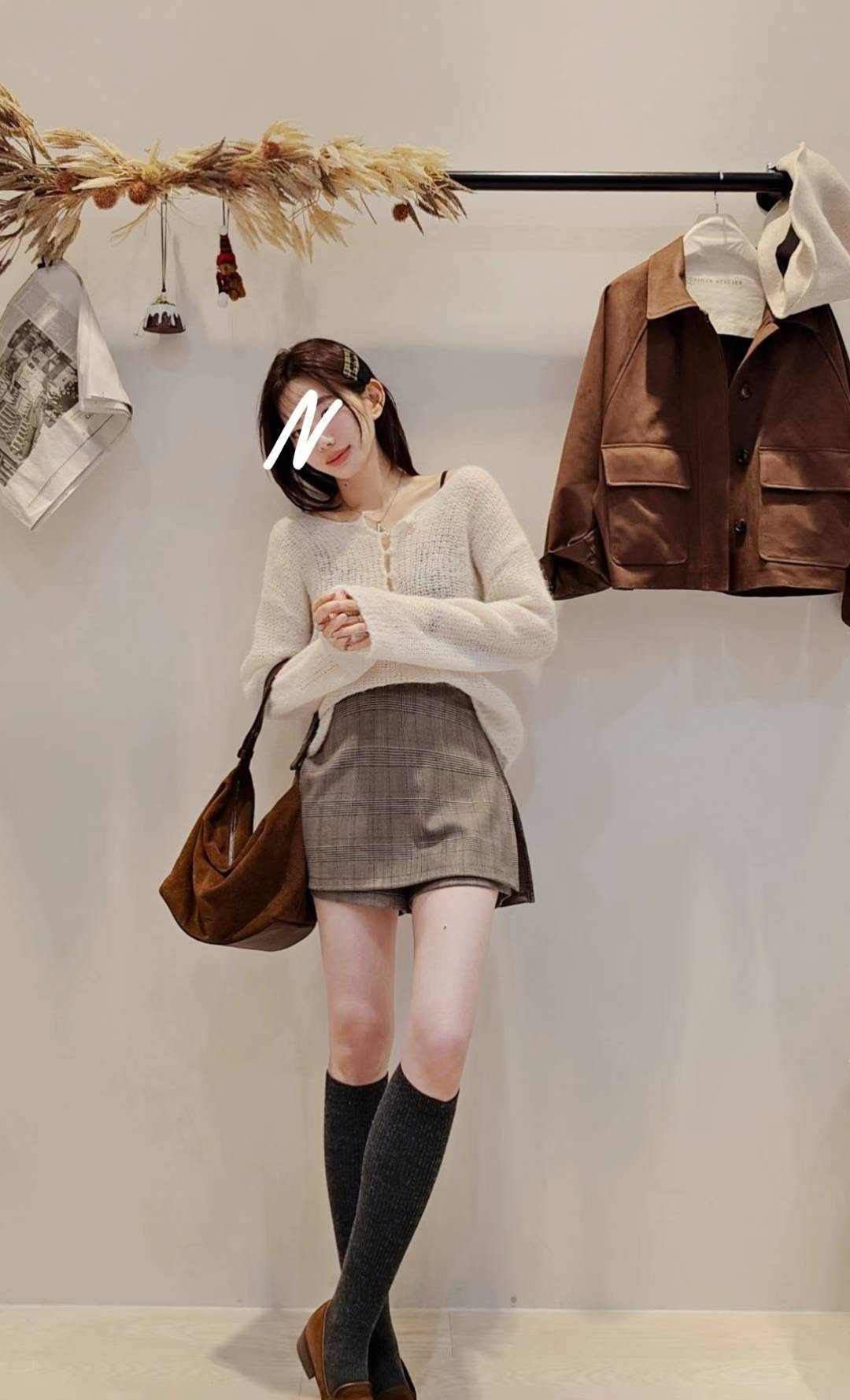 上身可以搭配寬鬆毛衣或是大學衛衣都好看🩶🖤