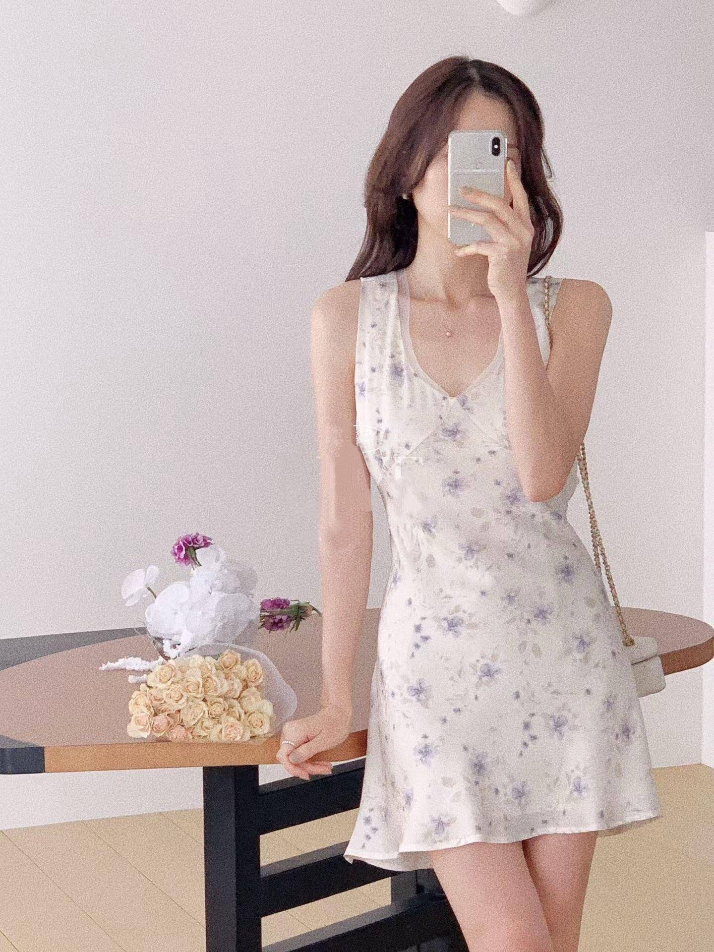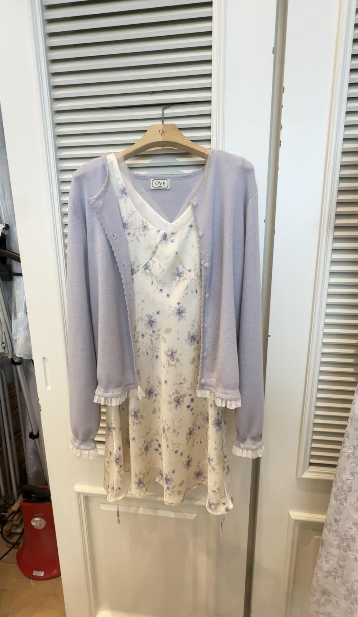 外面搭一件淡紫針織小外套