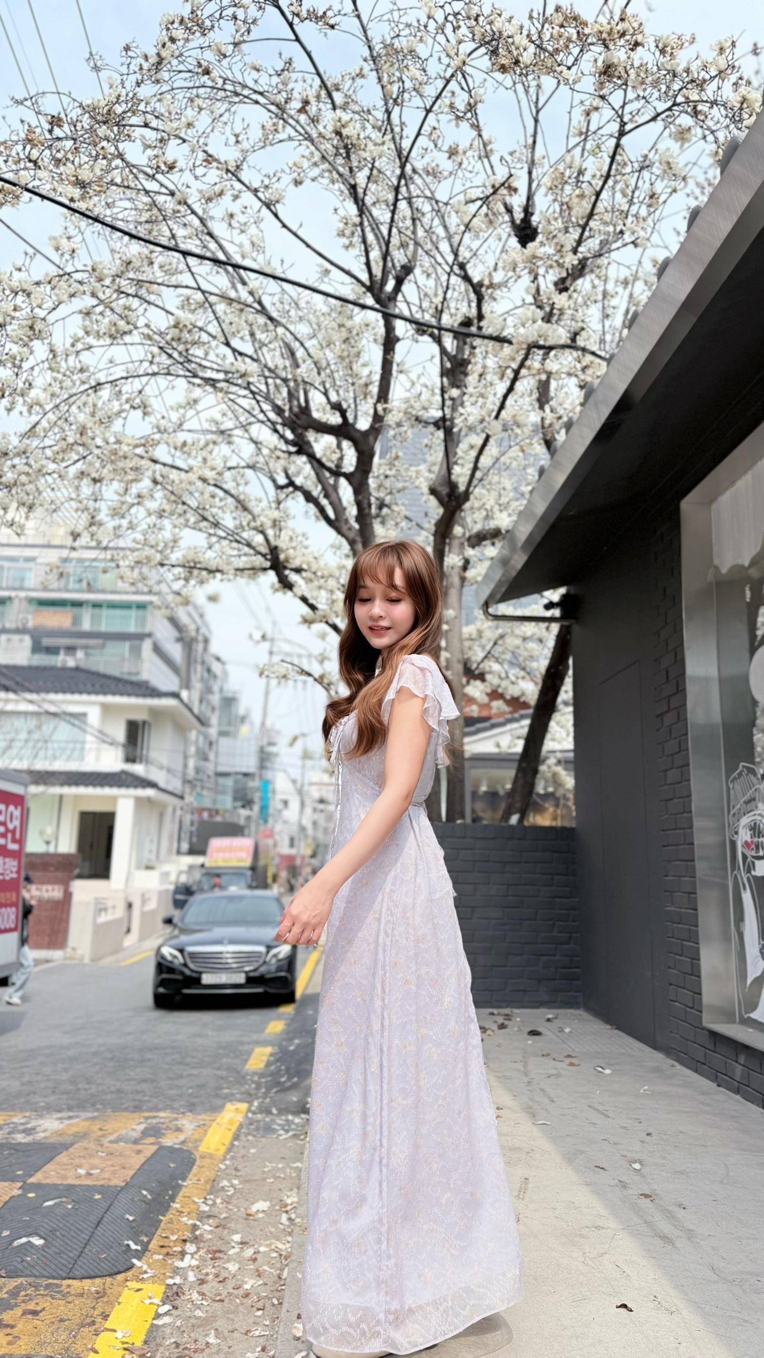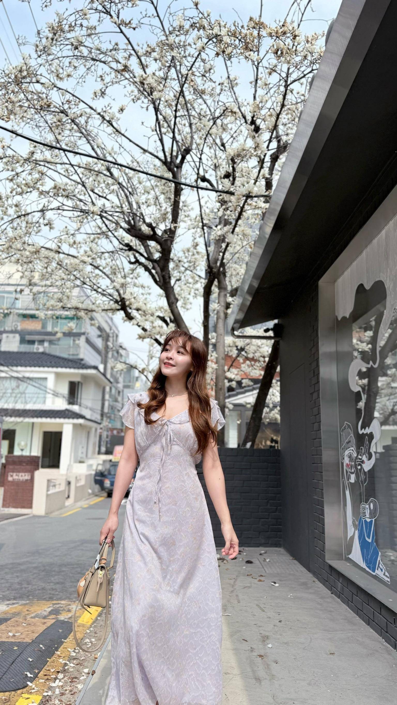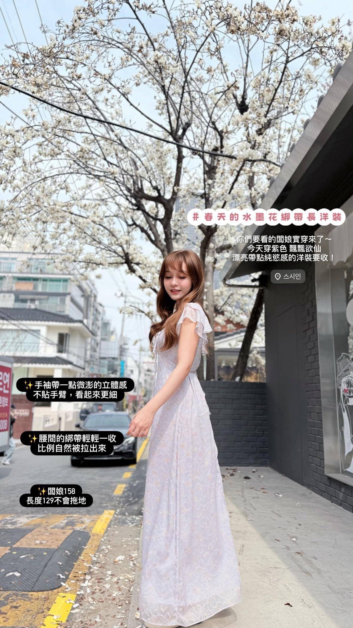 🇰🇷Spring Seoul|春天的水墨花綁帶長洋裝