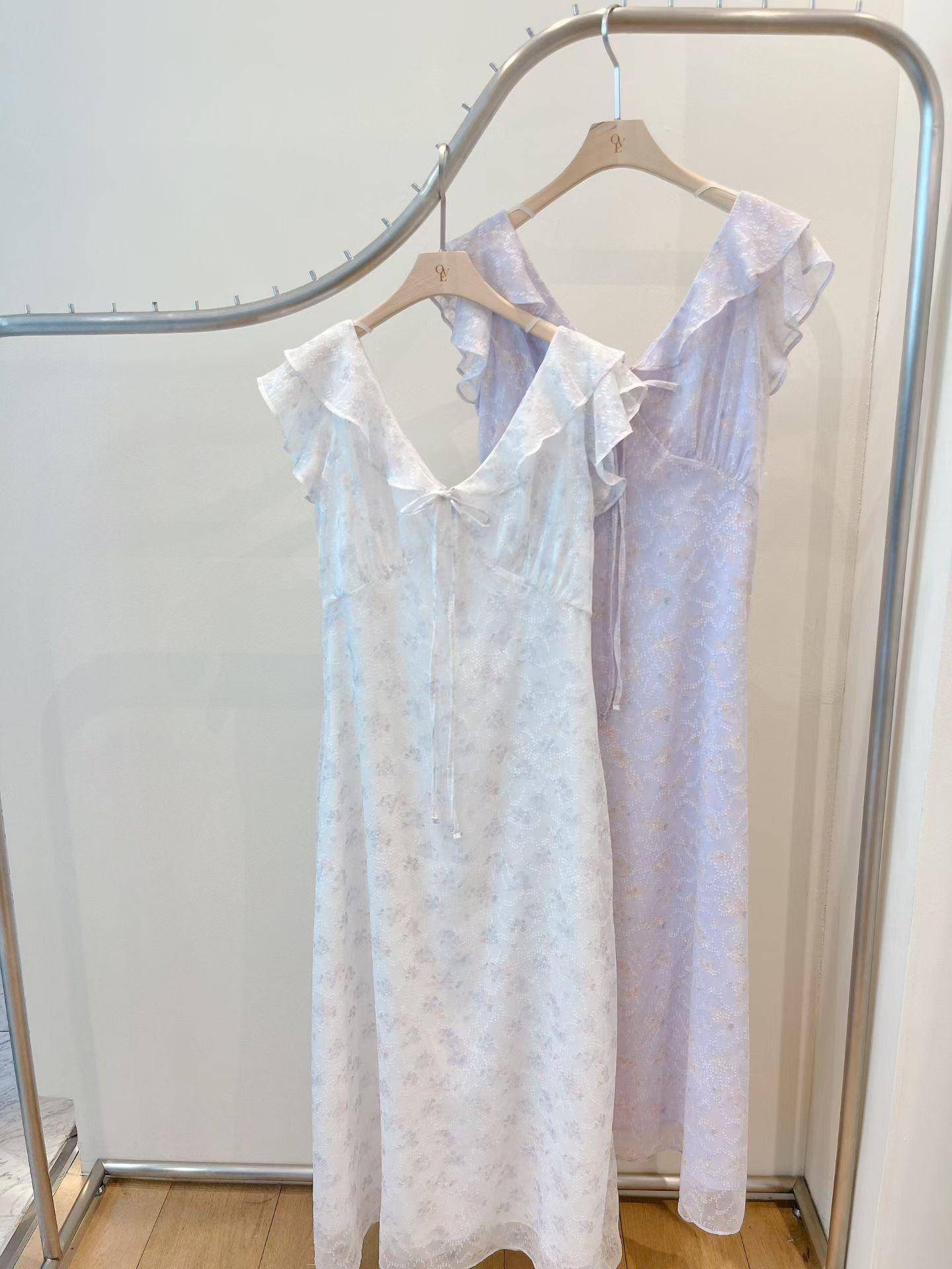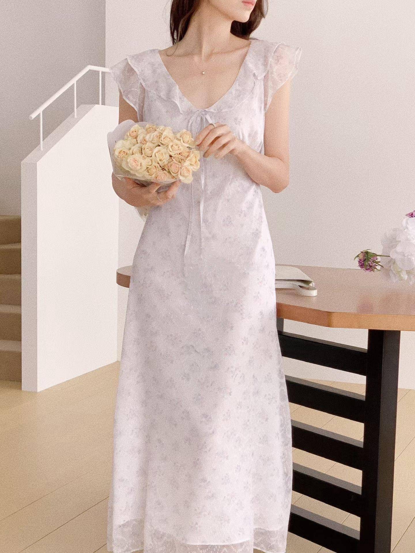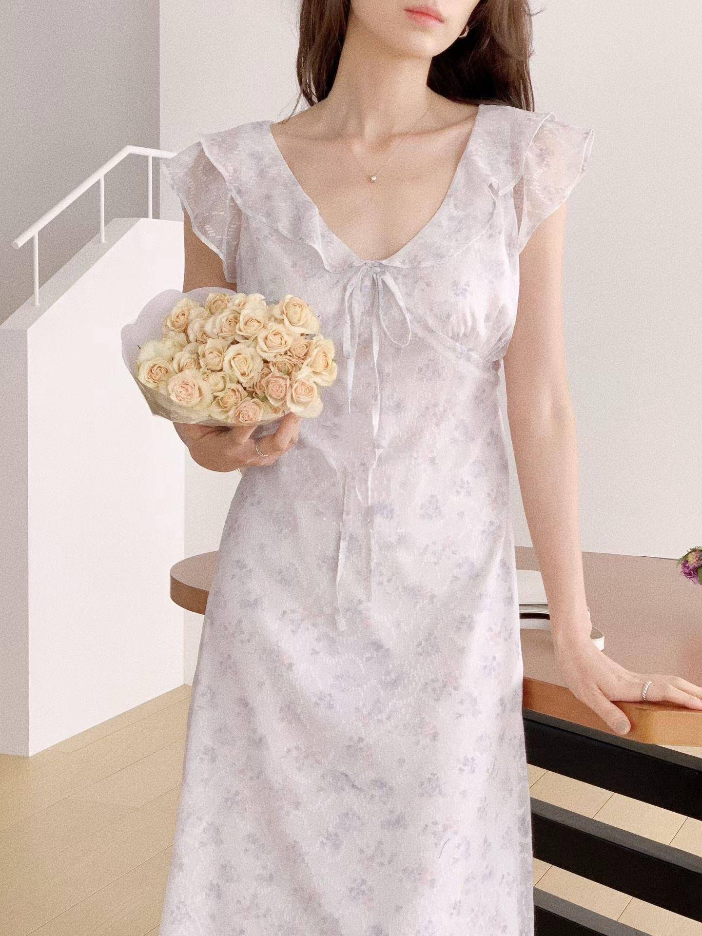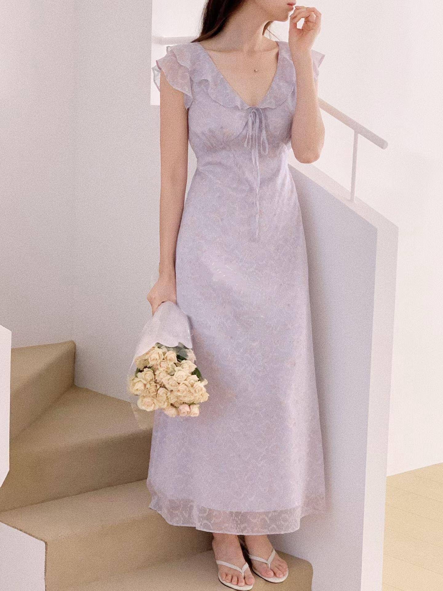 花霧荷葉綁帶長洋裝