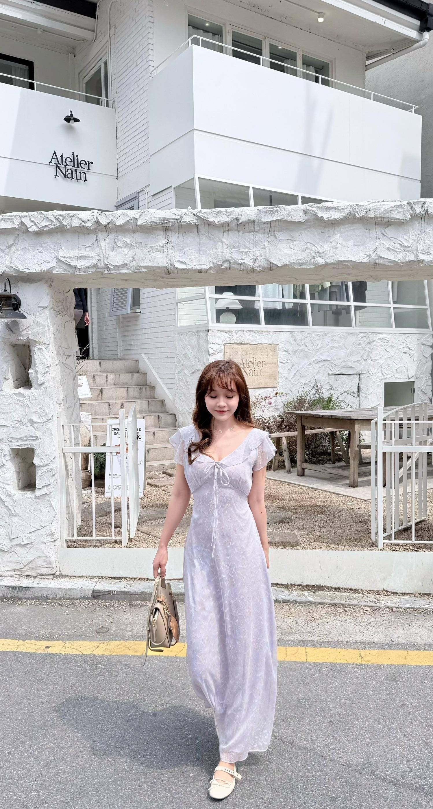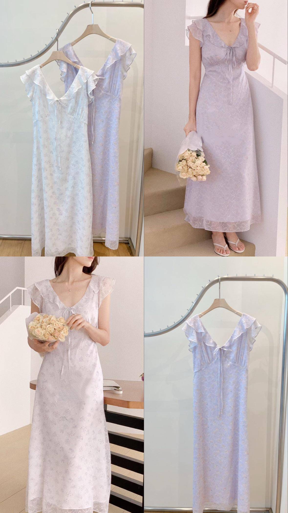 花霧荷葉綁帶長洋裝 (2 colors)