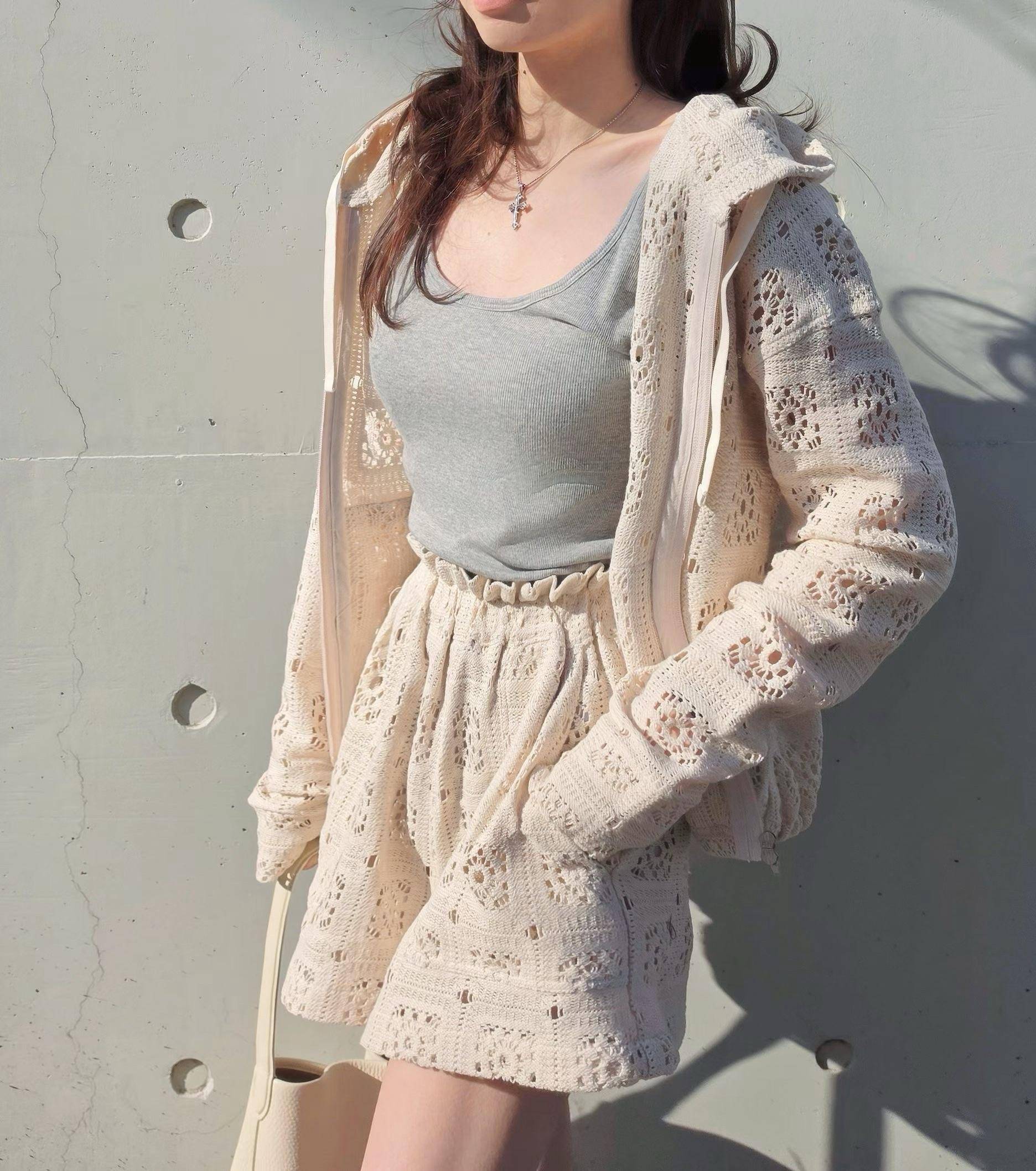 小仙女的蕾絲連帽外套&短褲(2 colors)