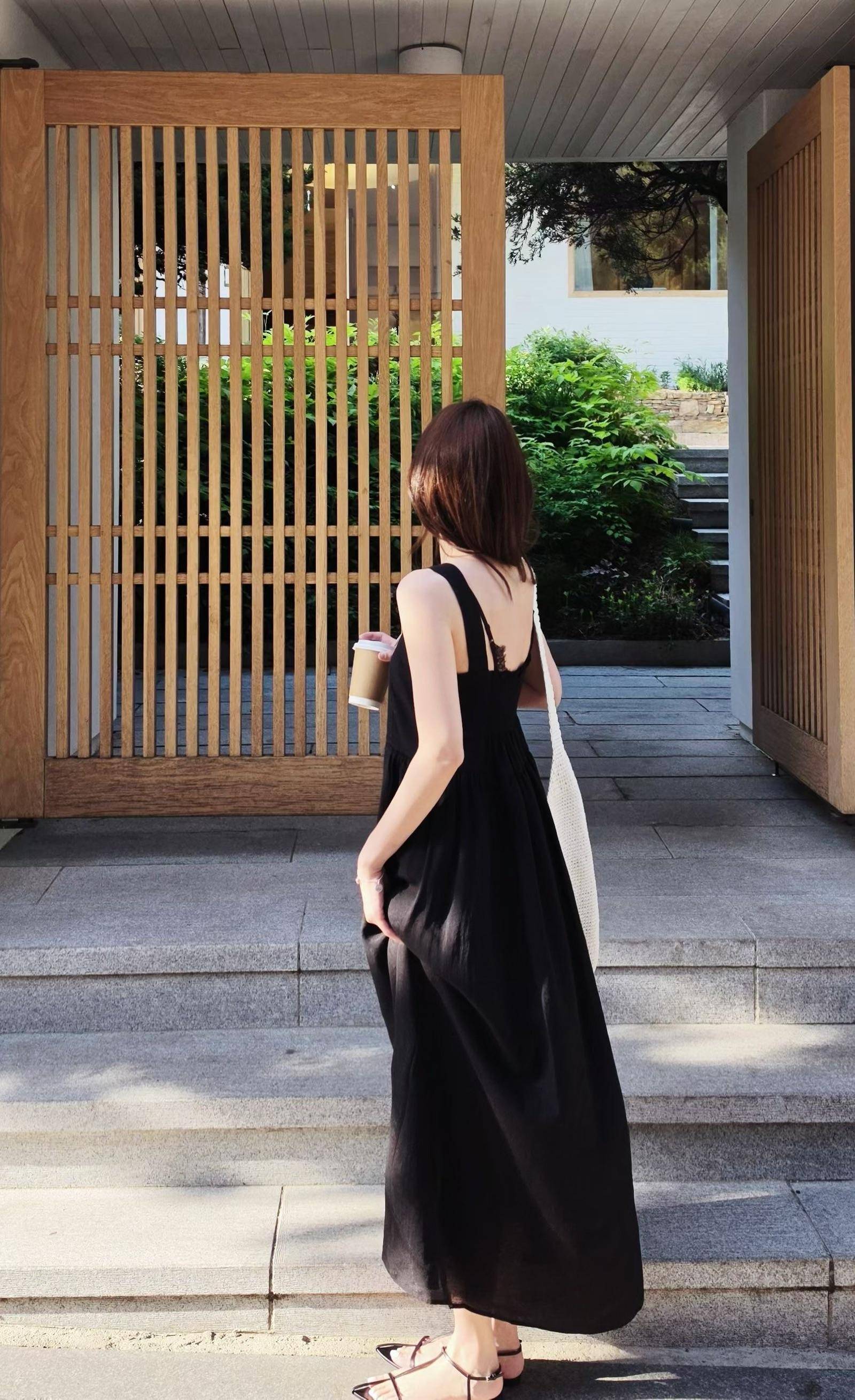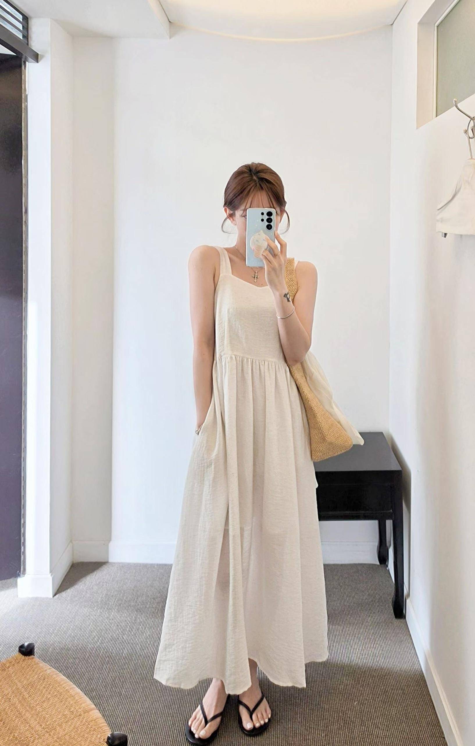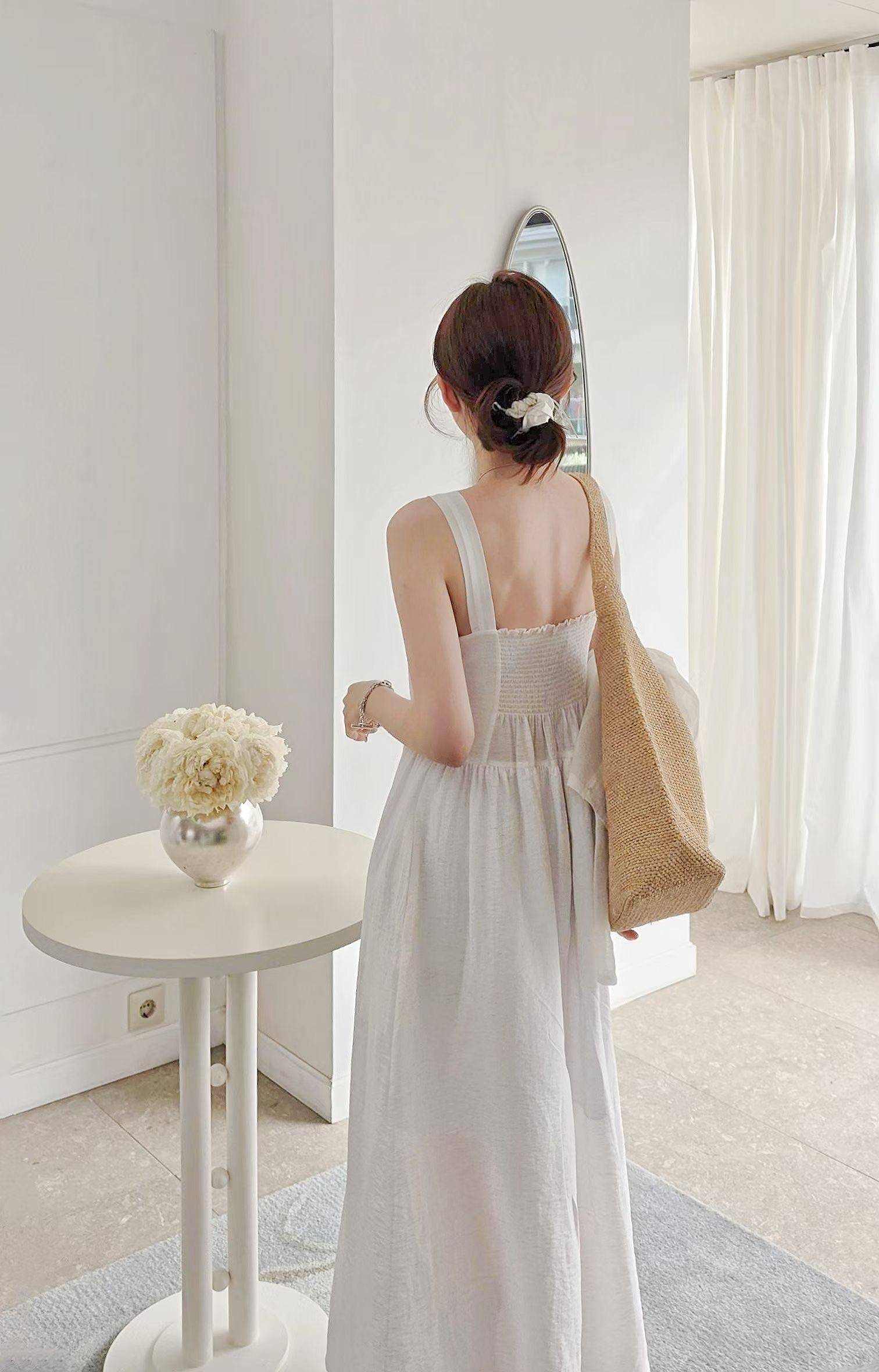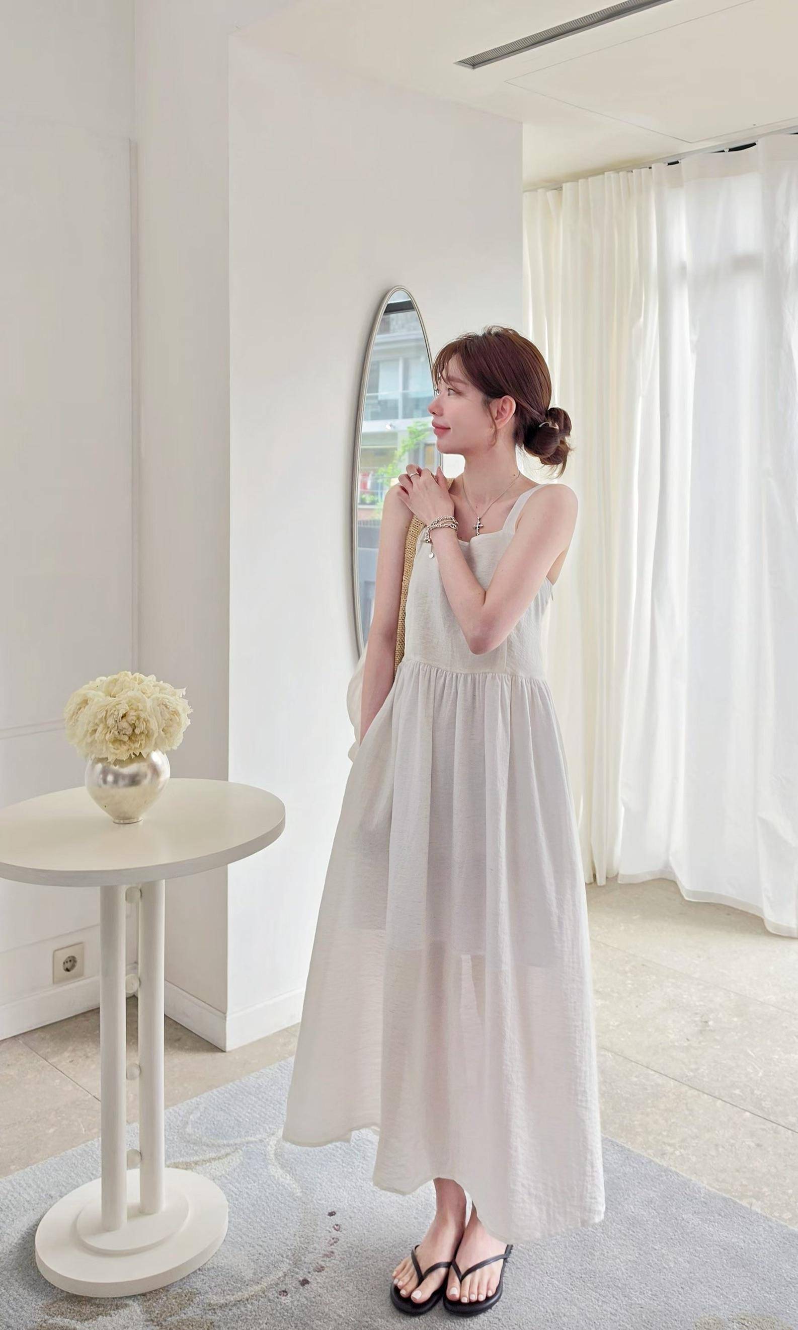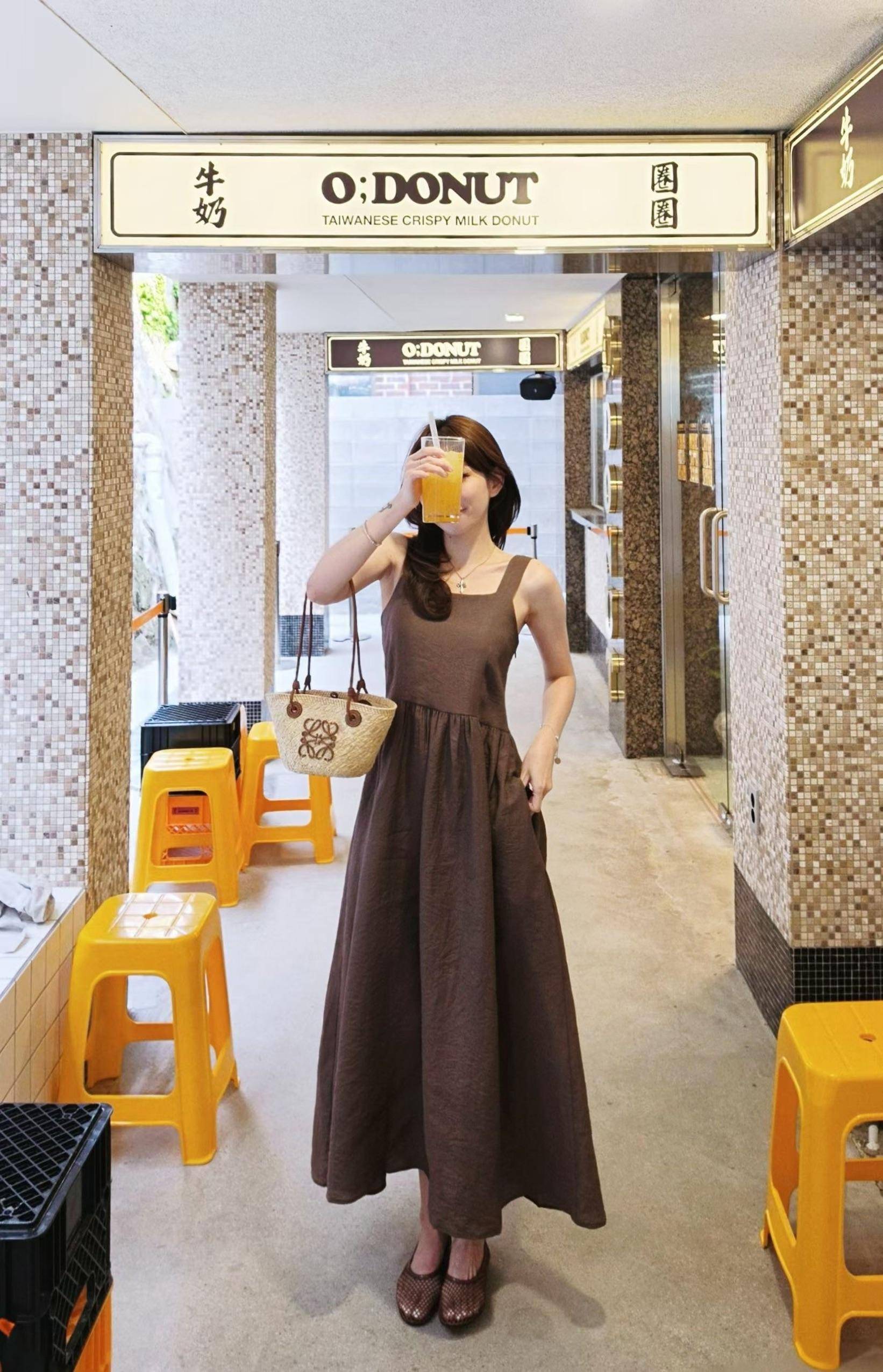 簡潔氣質的一款長洋裝,前後領都是方形設計