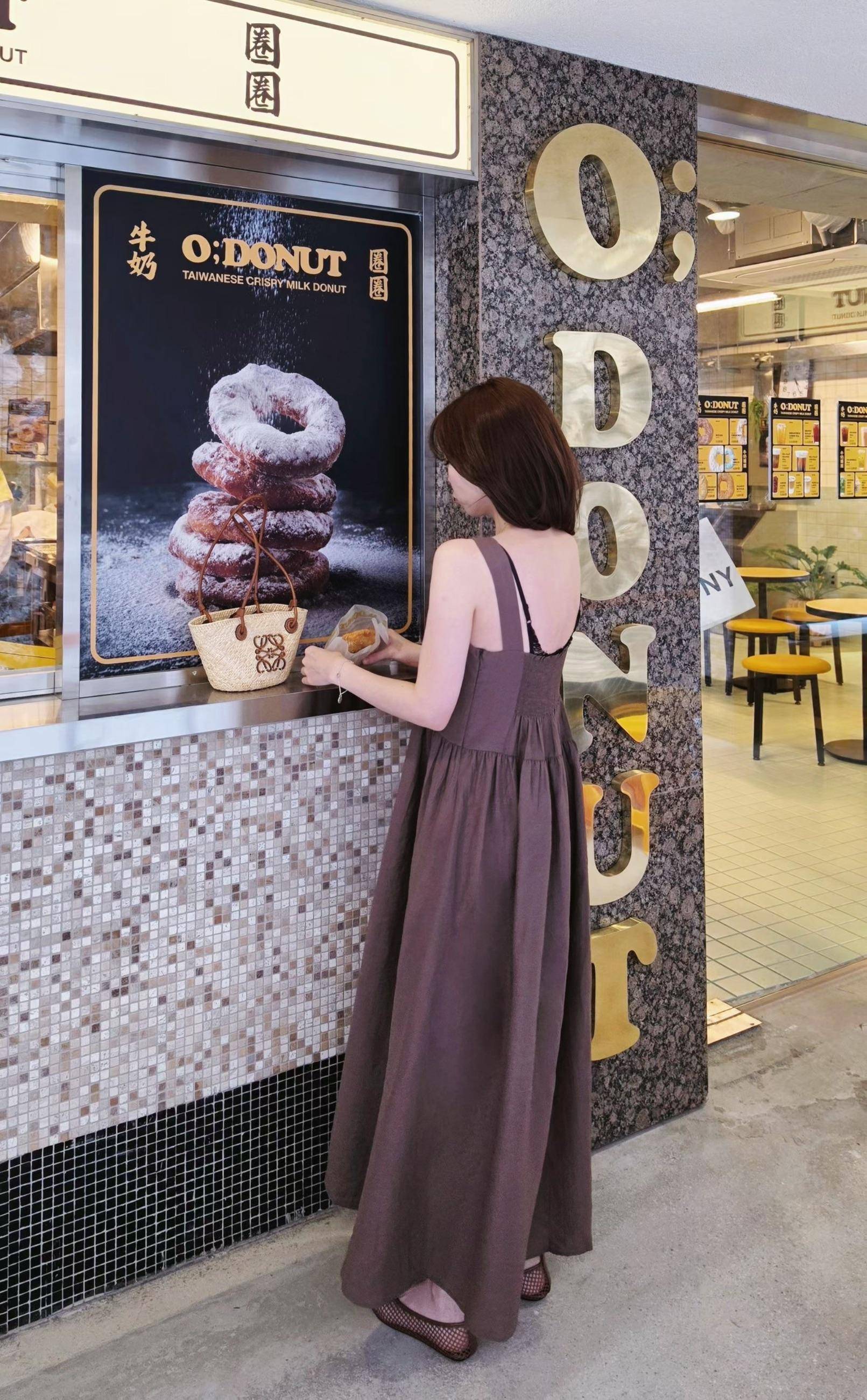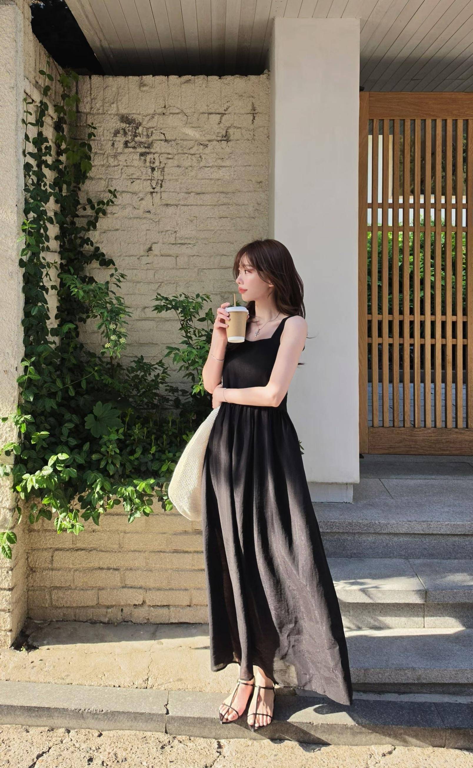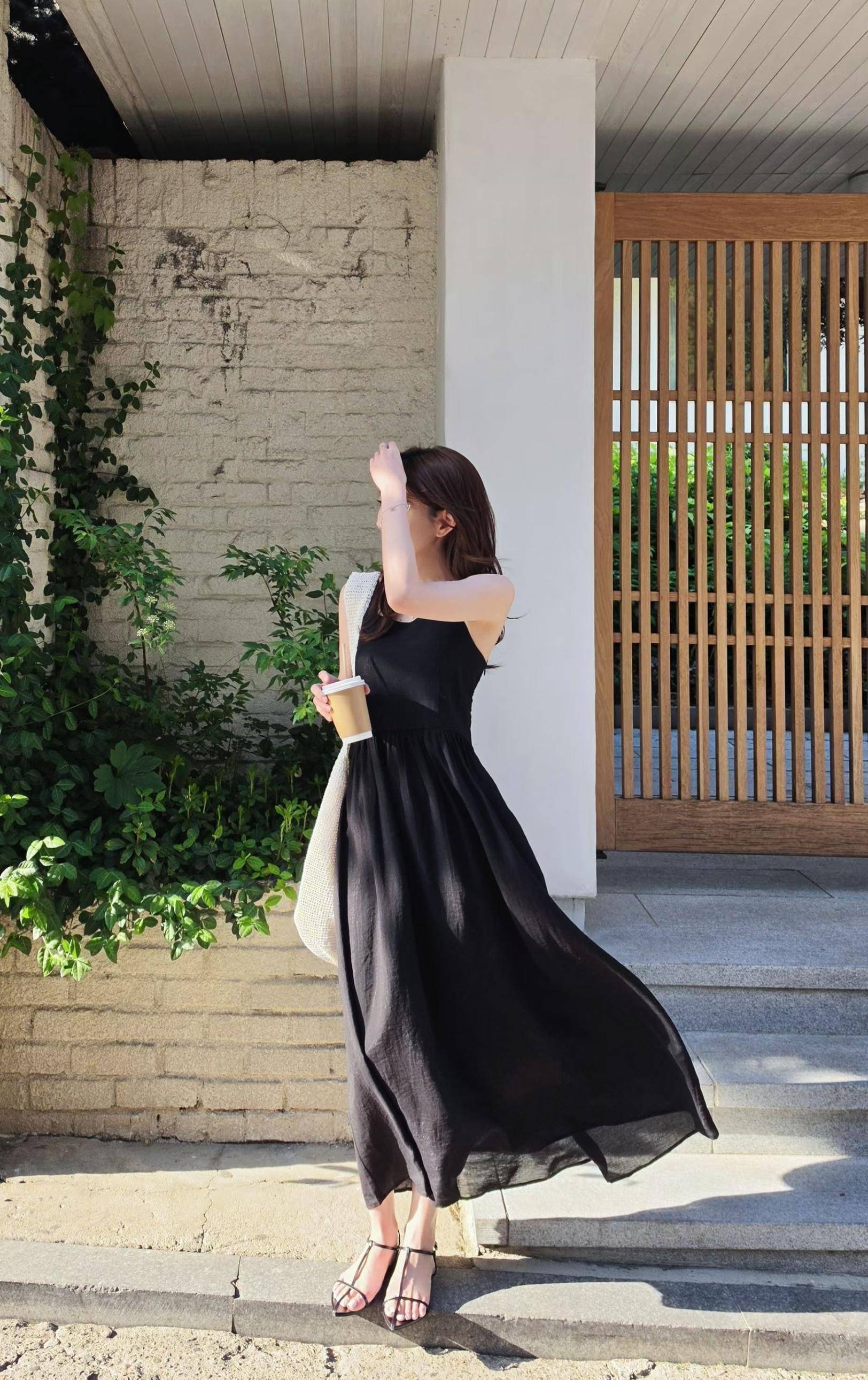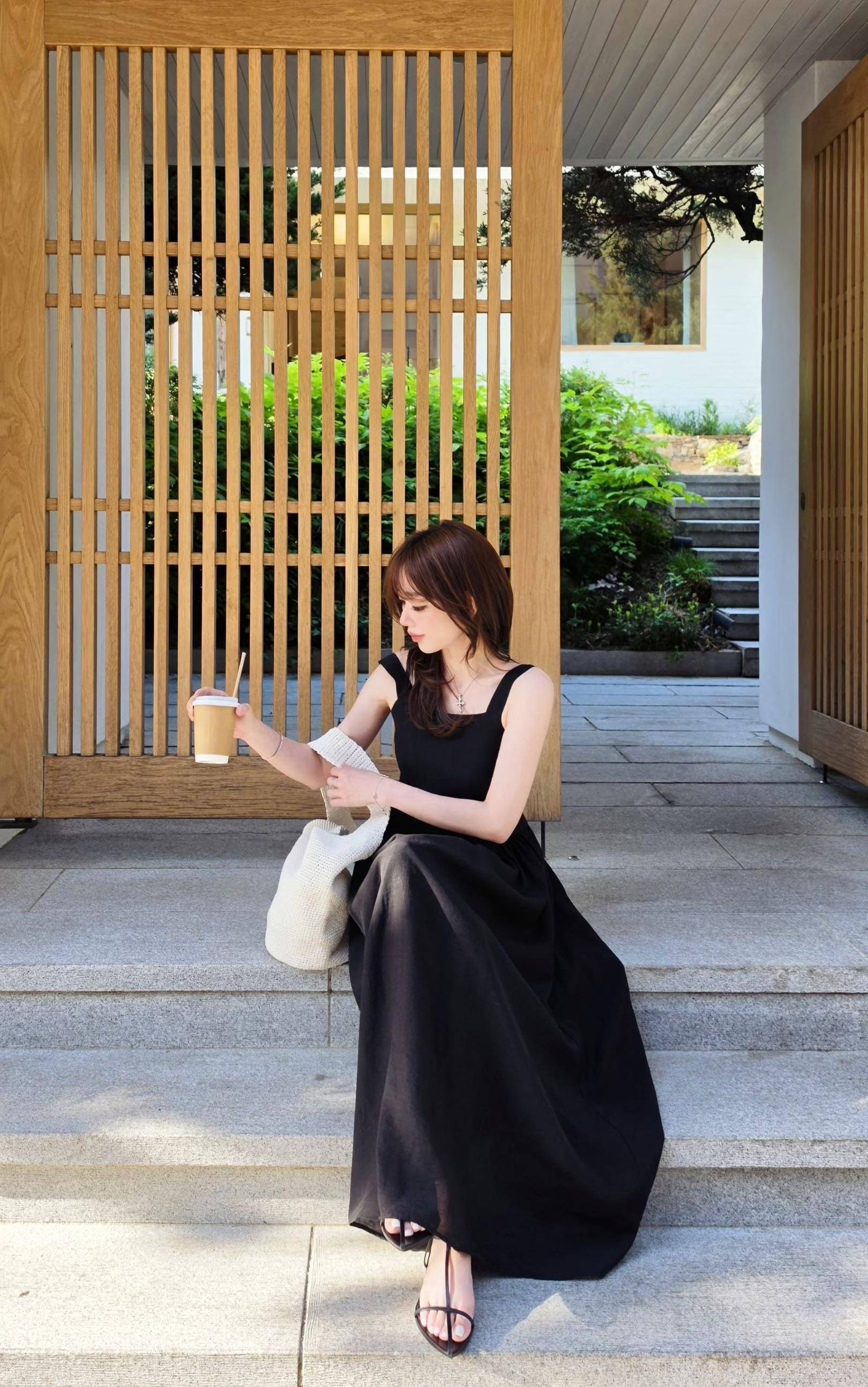 簡潔氣質的一款長洋裝,前後領都是方形設計