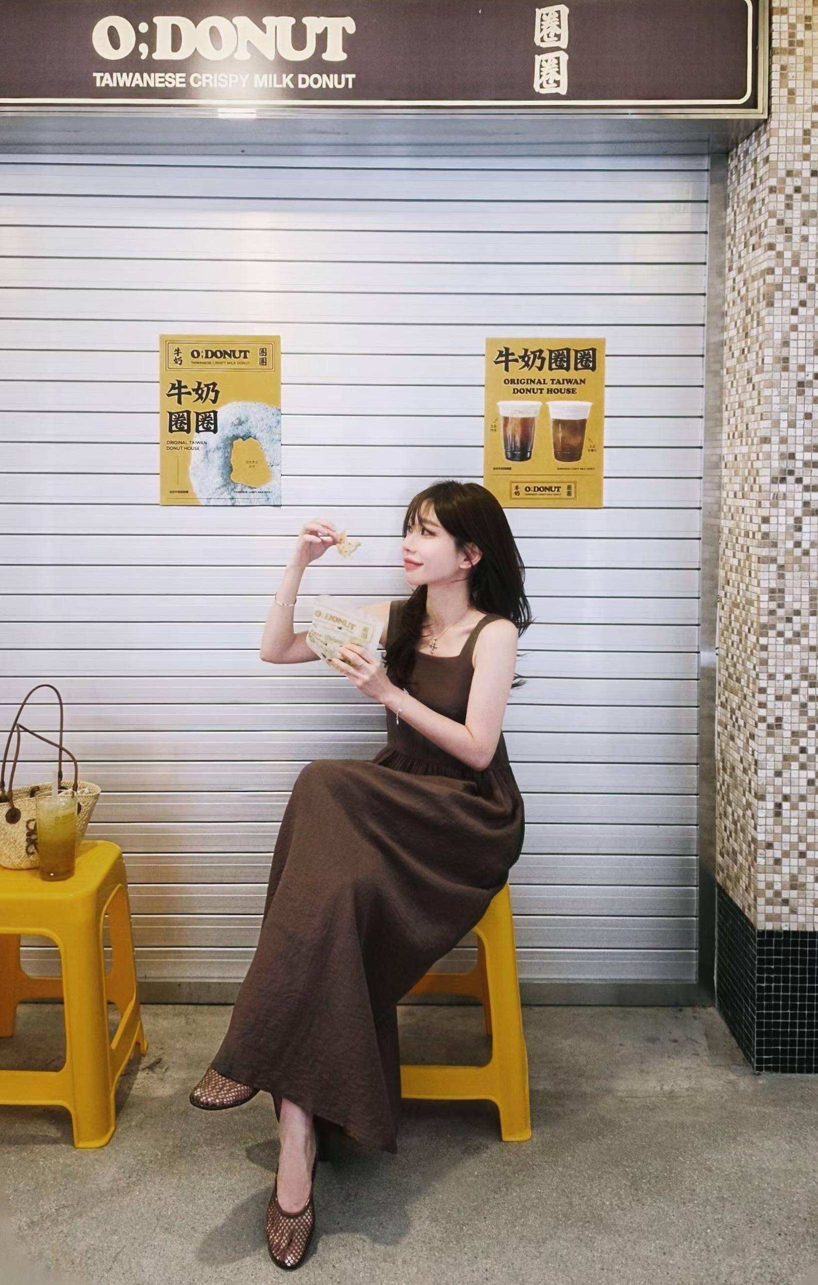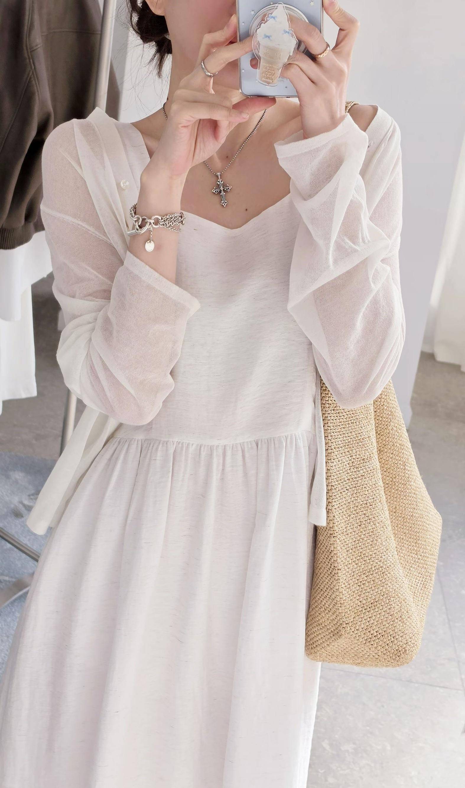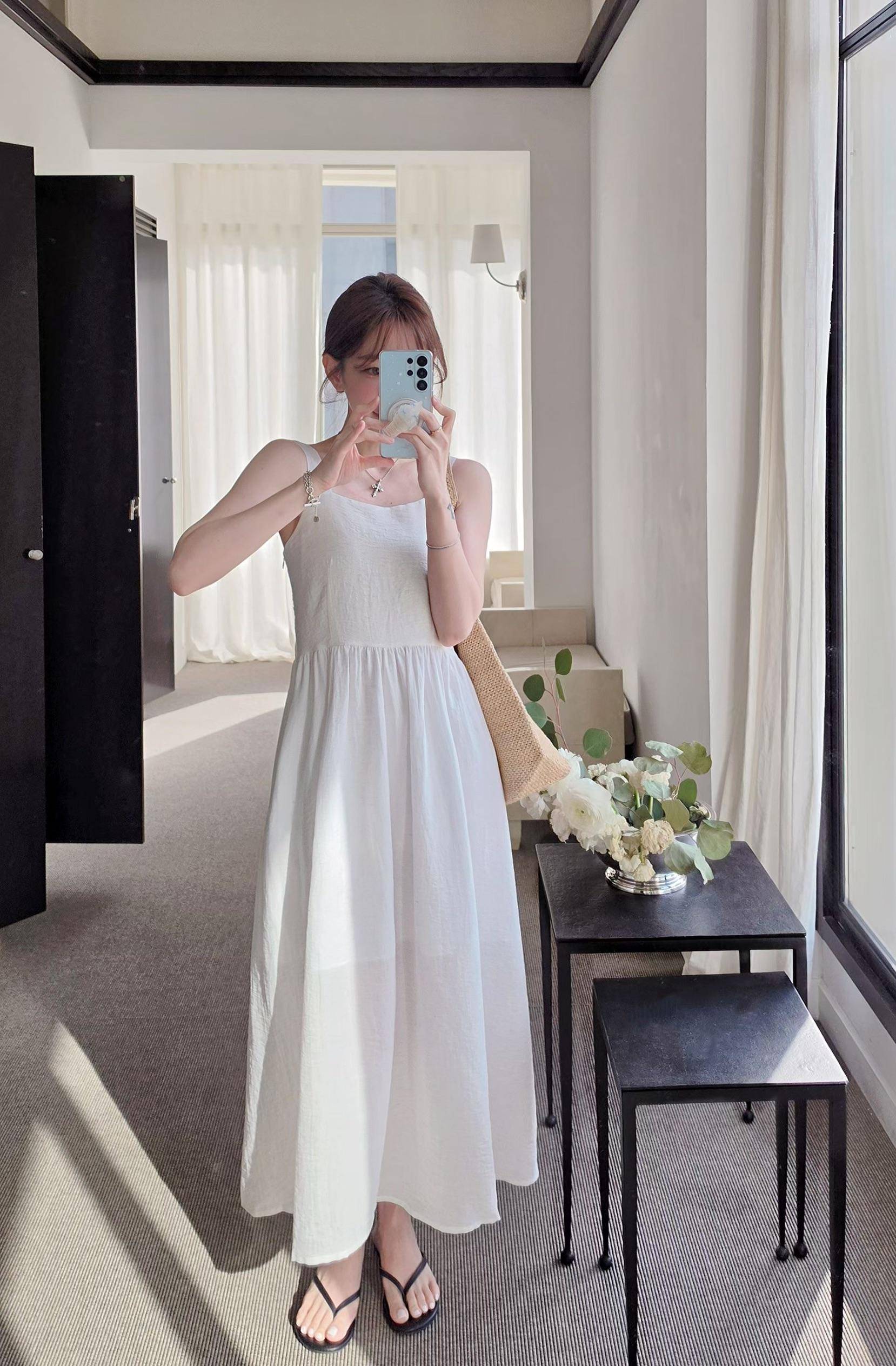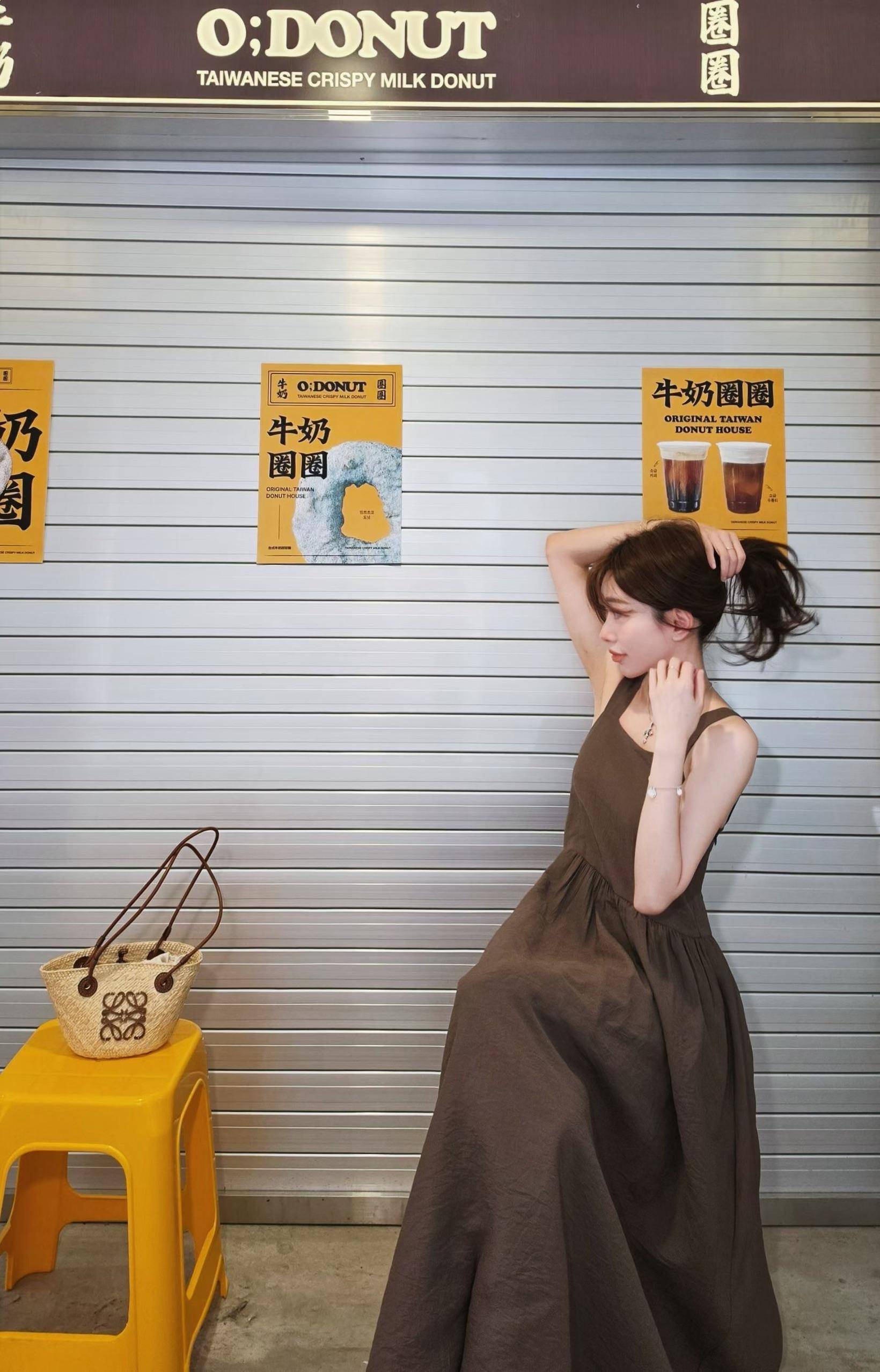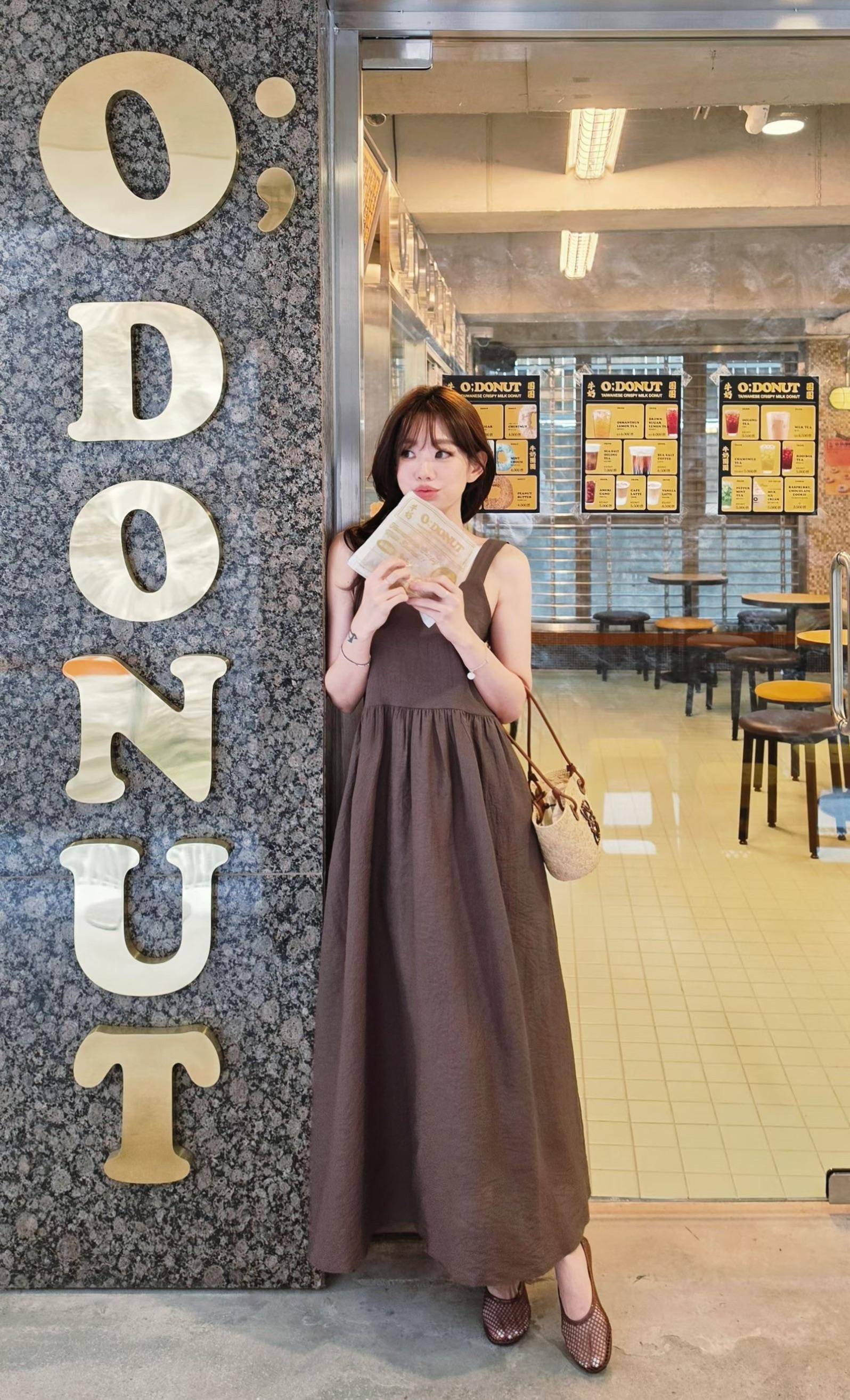 簡潔氣質的一款長洋裝,前後領都是方形設計
