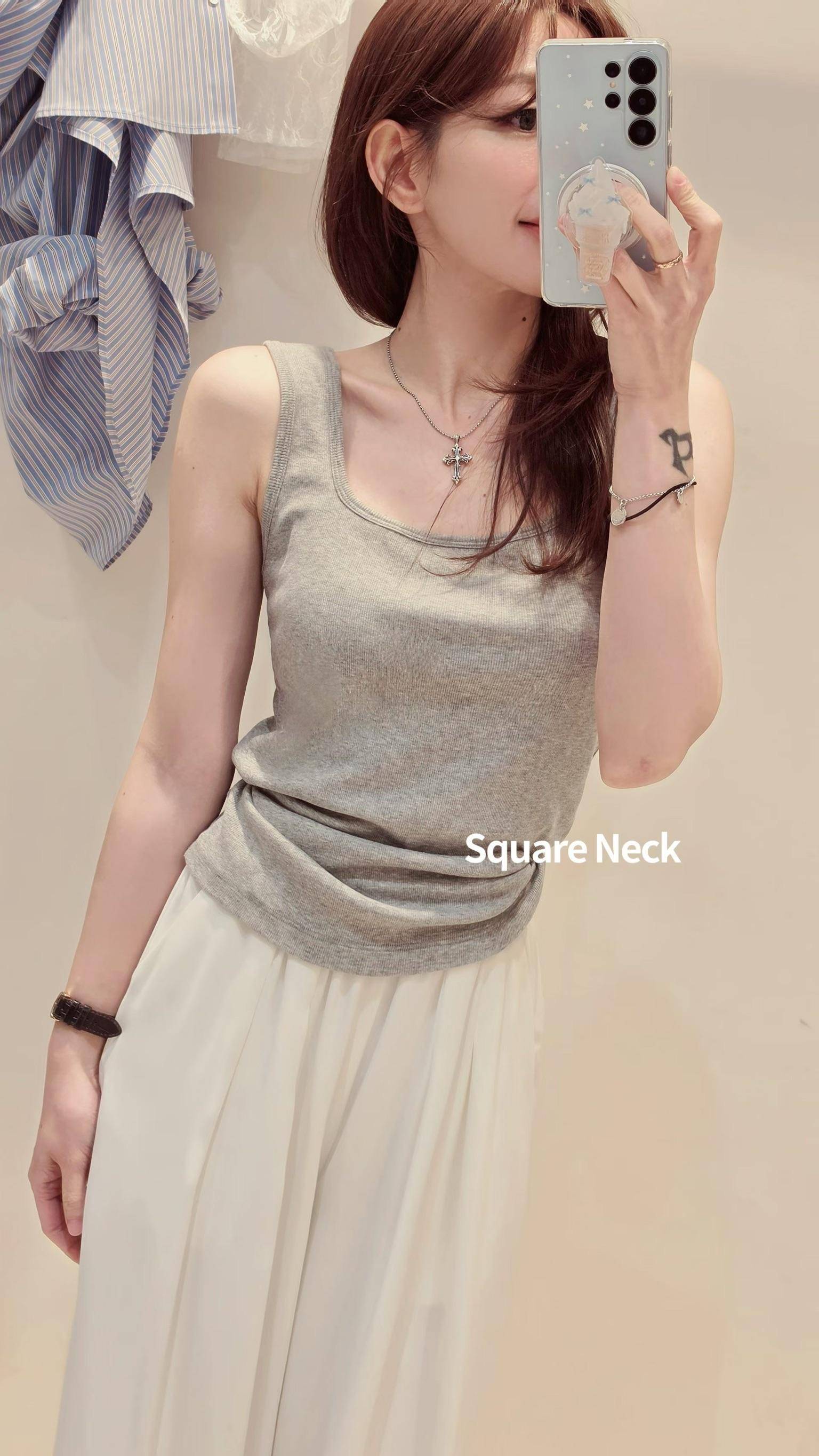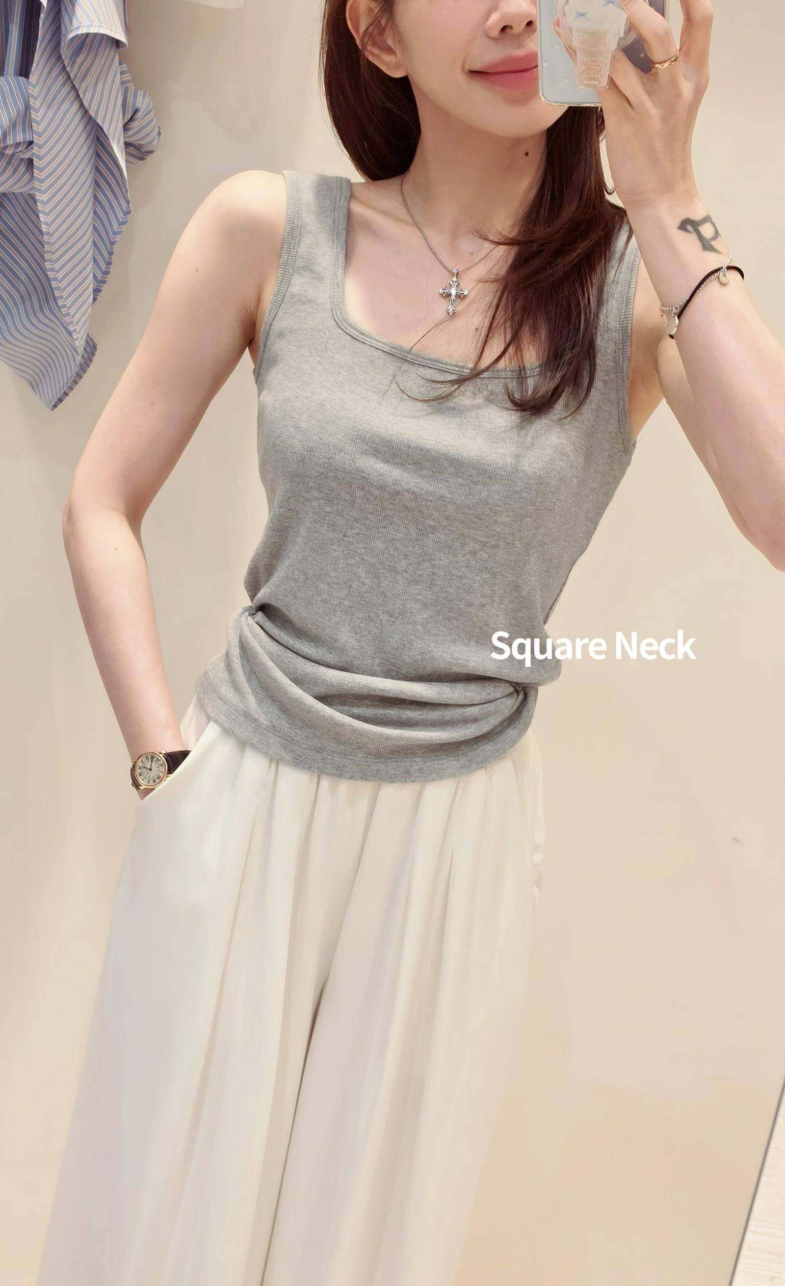 夏日萬能基礎背心,U領+方領,依搭配可以兩面穿~