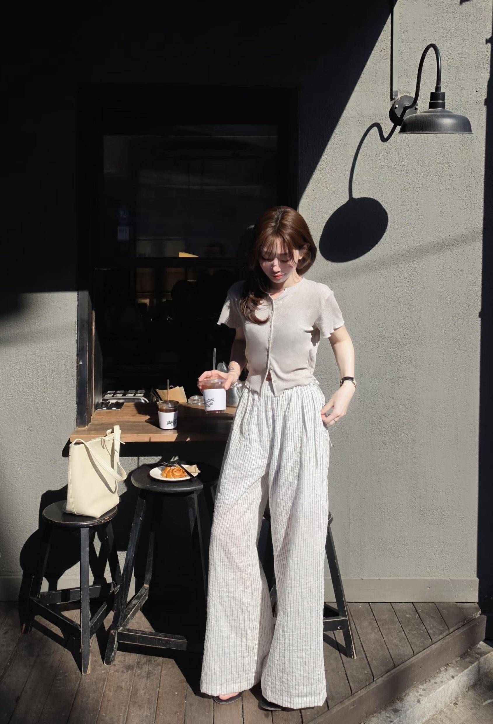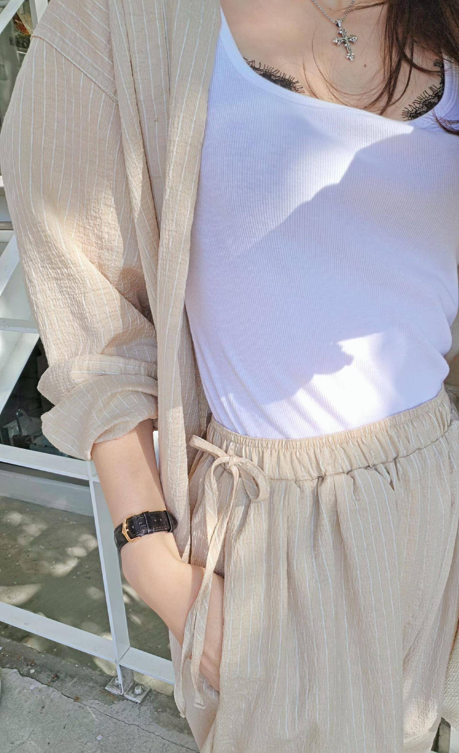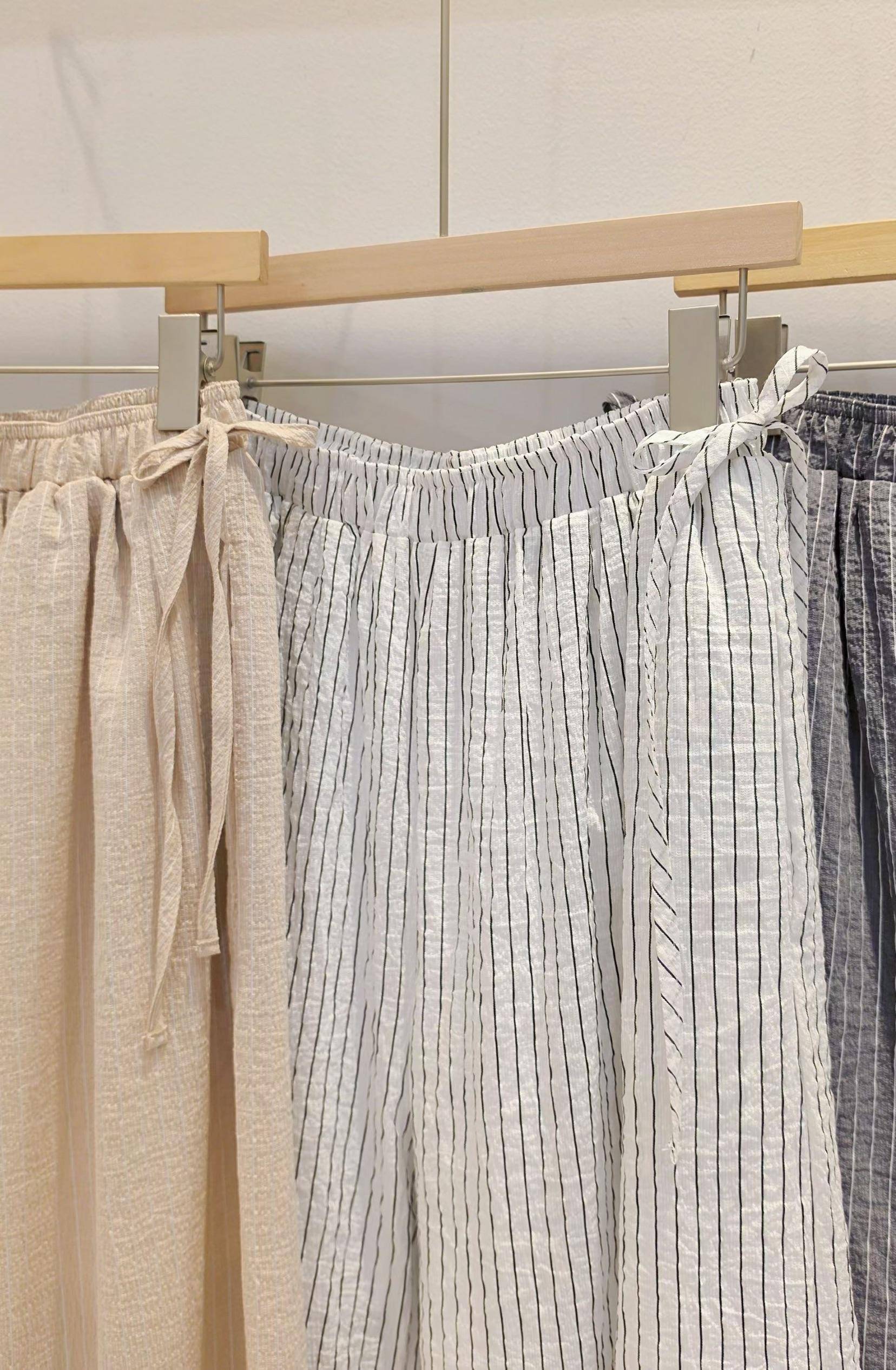 鬆弛時髦感天絲條紋長褲(3 colors)